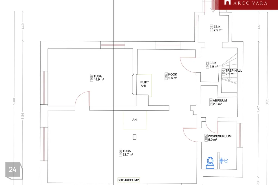 1950ndatel ehitatud ning uuenduskuuri läbinud maja ruumiplaneering on hubaselt mõnus. Suletud netopindala on 123,4m², hoonel on kaks korrust.