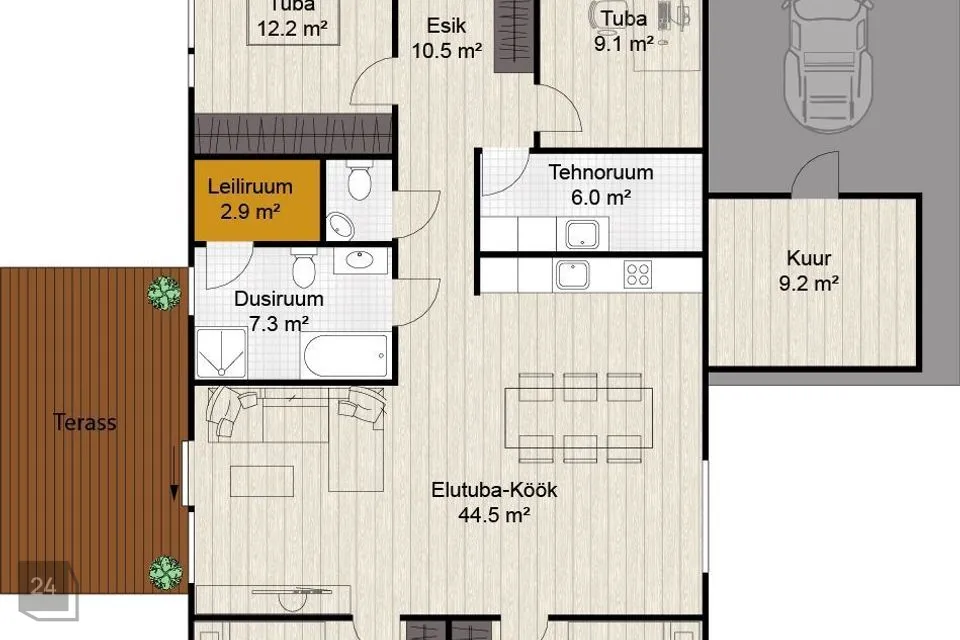 • Otsepääs terrassile nii elutoast kui pesuruumist