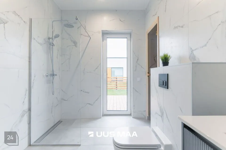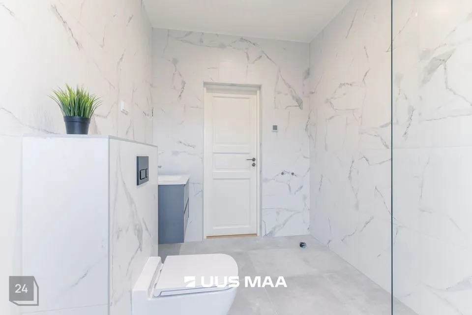 • Pesuruumis kvaliteetne sanitaartehnika: seinaraamiga WC, kraanikauss ja klaasseinaga dušinurk