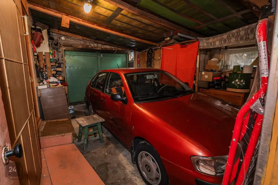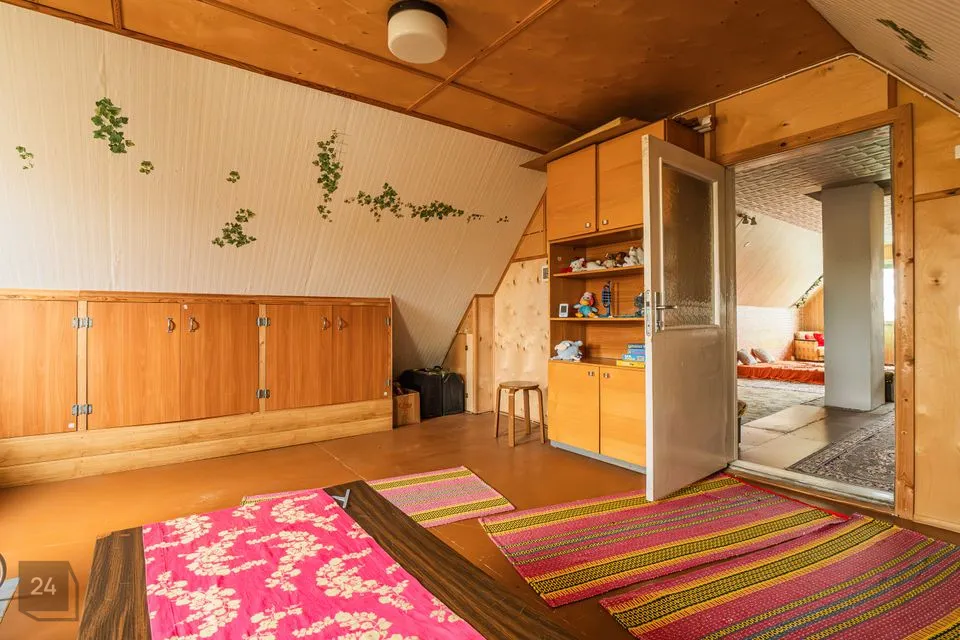 The entryway has a staircase leading to the second floor and access to the garage, which in turn contains an original sauna and WC. These rooms are currently no longer in their original use.