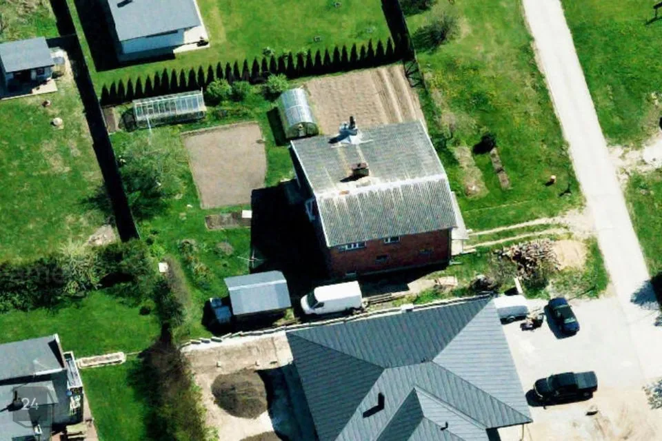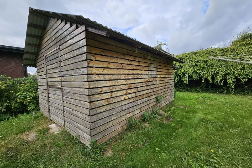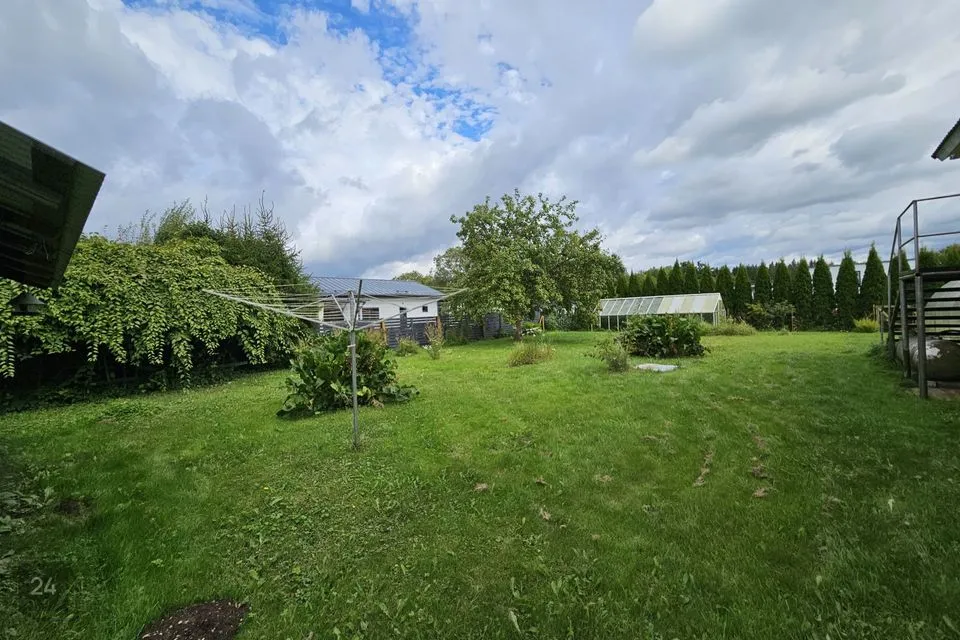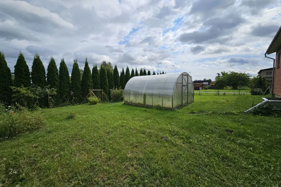 Aiaga ümbritsetud õuealal kaks kasvuhoonet, väike kuur ja erinevad taimekultuurid.