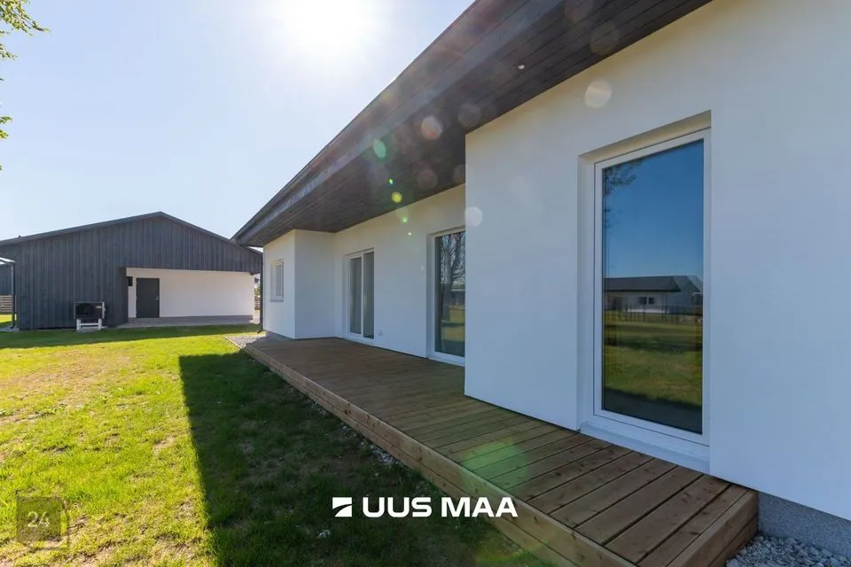 Valgustus: siseruumides LED laevalgustid, autovarjualuses liikumisanduriga LED-tuled, valgustatud maja tagune terrass.