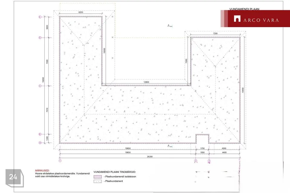 on rajatud ja soojustatud elamu vundament, on rajatud elamu välisseinad, on rajatud katuse kandvad konstruktsioonid, valatud on aluspõrand, rajatud on küttetorustikud ja paigaldatud on küttekollektorid