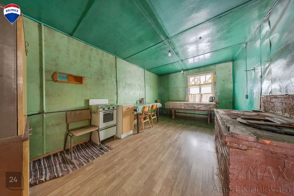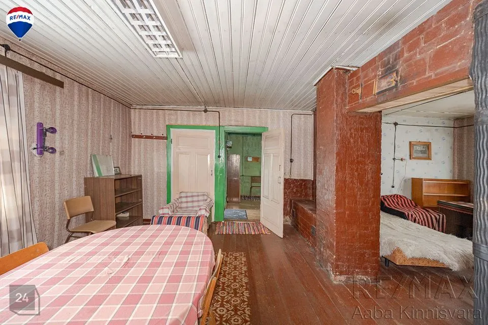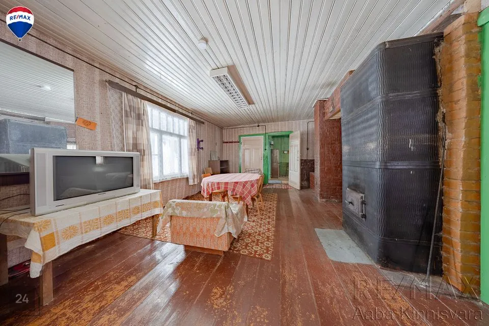 Majas on korralikud laiast lauast põrandad, puiduga viimistletud laed ja täispuidust siseuksed, mida võimalik säilitada. Maja kütmiseks on puupliit ja ja ahi, elutoas leso.