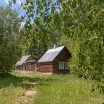 Elumaja on vana palkhoone, millel nüüd krohvitud fassaad ja eterniitkatus.