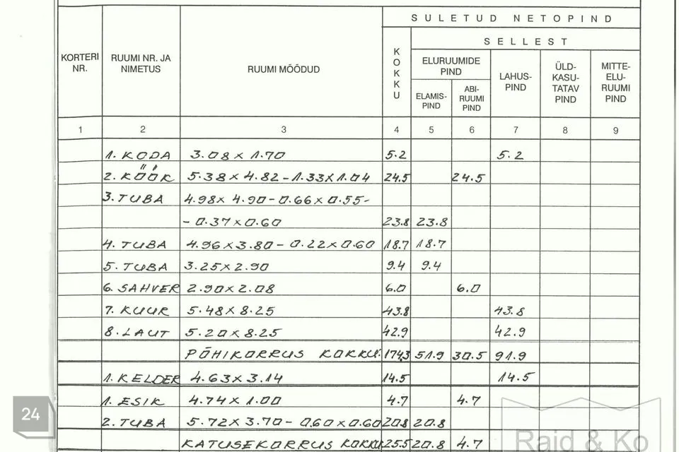 Elamu suletud netopind 214,3 m², sellest eluruumide pind 107,9 m².