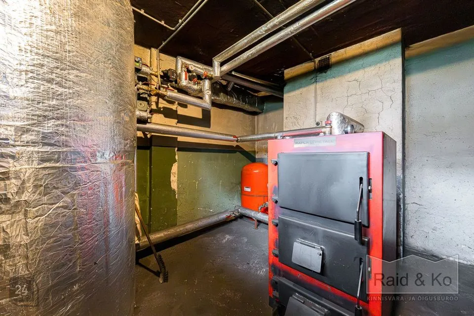 Keldrikorrus keskkütteruum 5,7 m², katlaruum 8,0 m², abiruumid 8,0 m², 17 m² ja 38,6 m² ja 15,5 m², kokku 44,4 m².