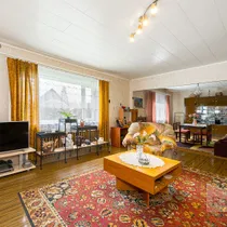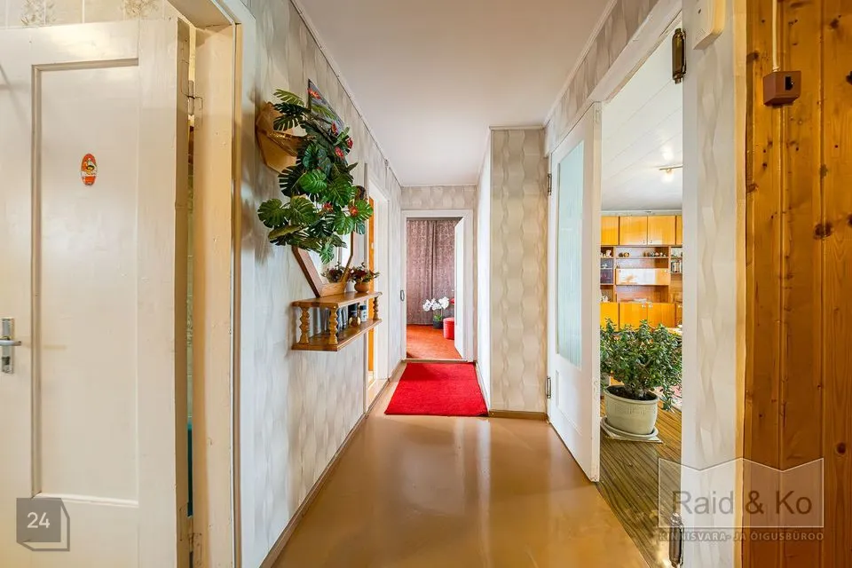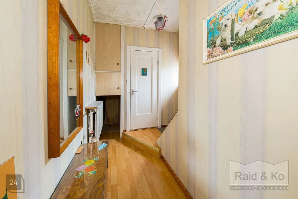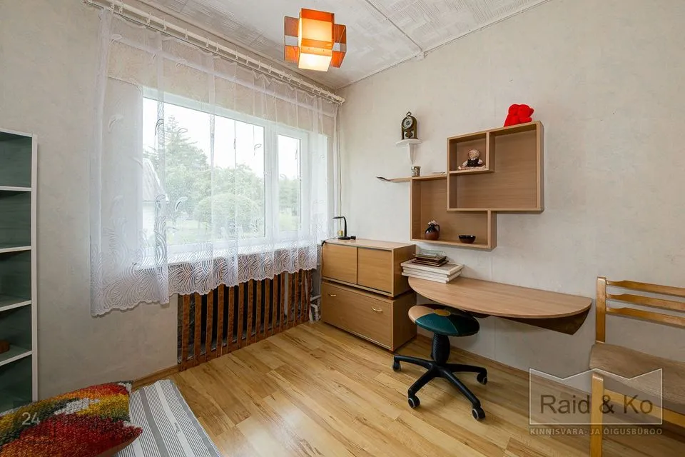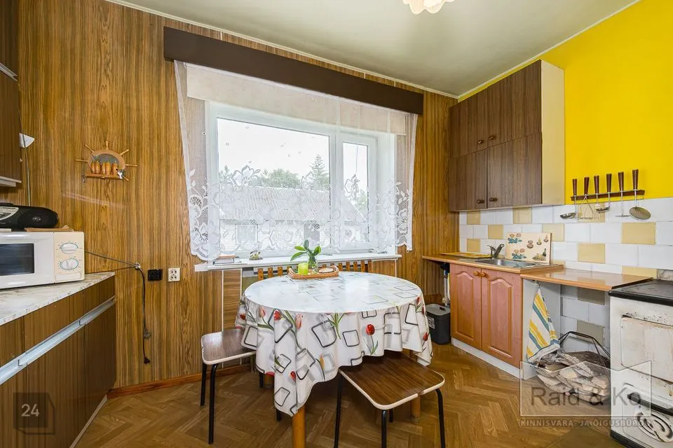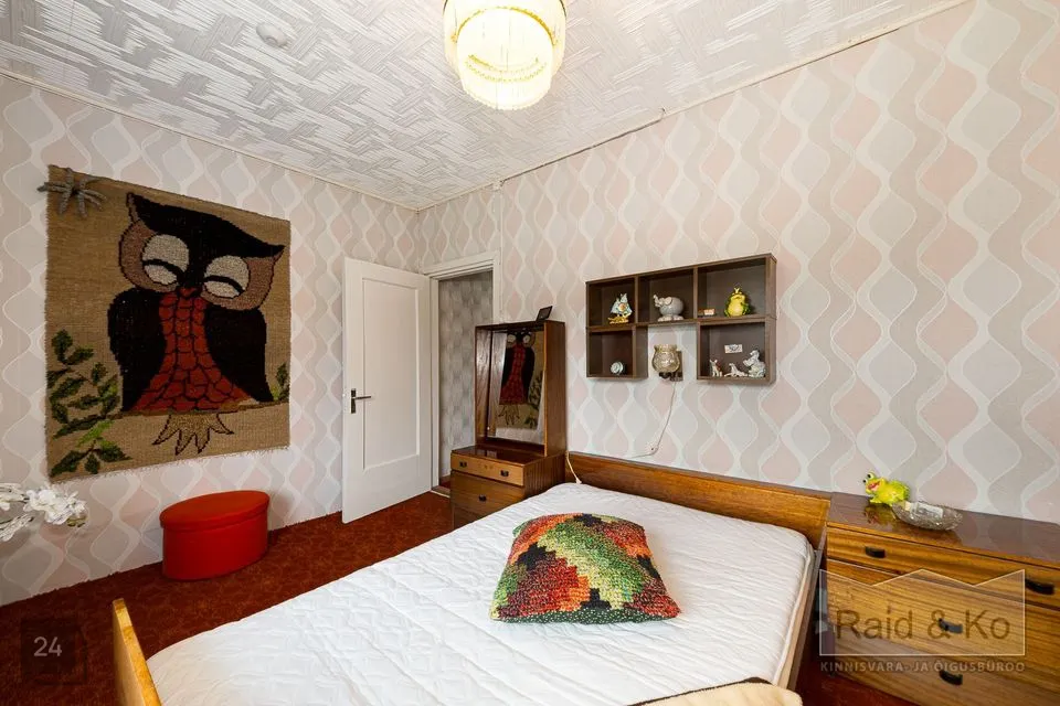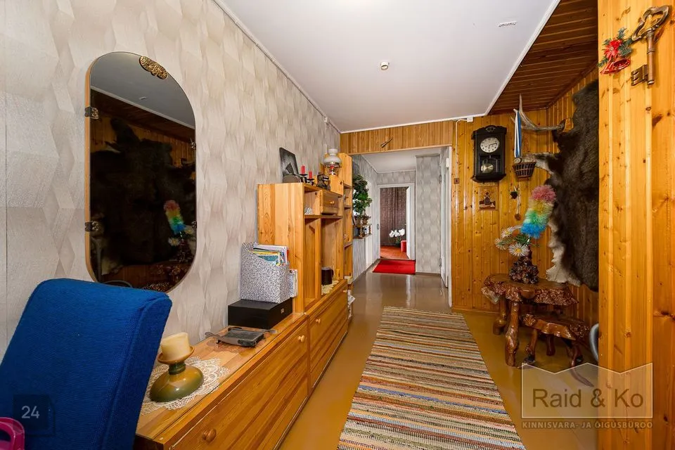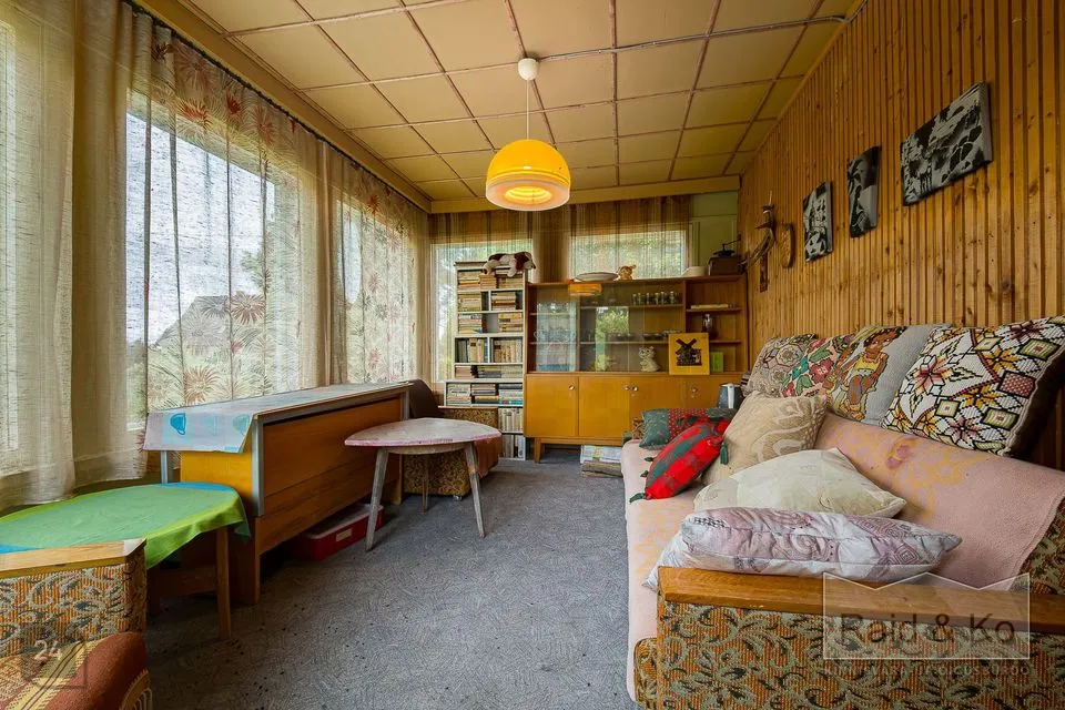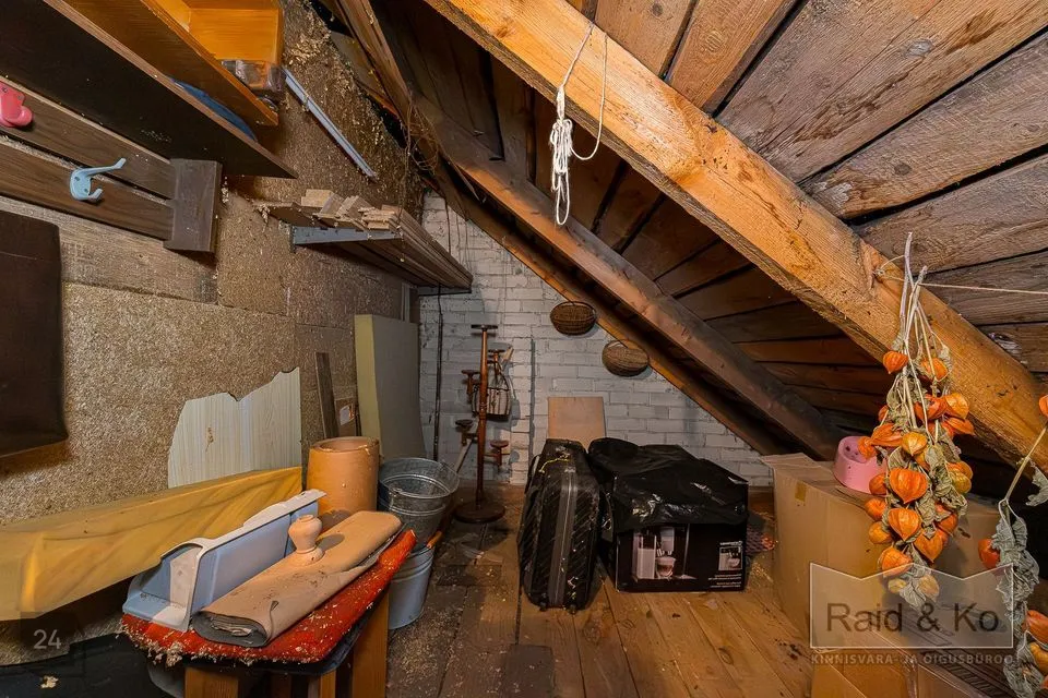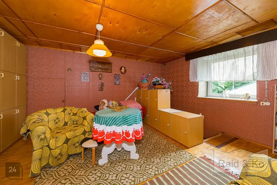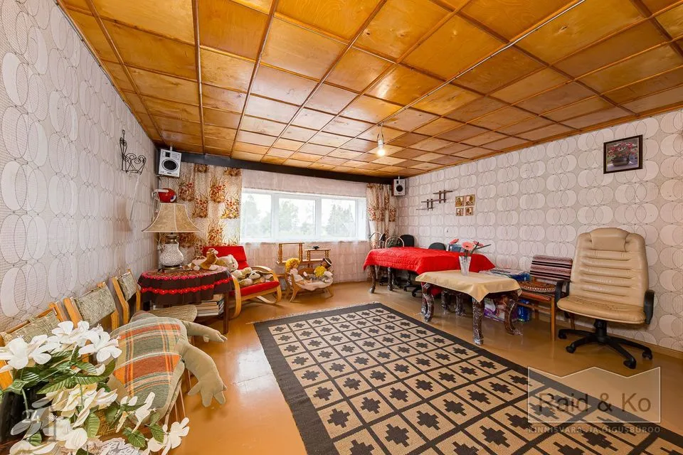 I korrus -elutuba 37 m², kaks magamistuba 8,2 m² ja 7,3 m², köök 9,2 m², wc-dushiruum 5,1 m², sahver 4,2 m², esik 20,6 m², koda 1,4 m², veranda/suvetuba 10,5 m², panipaik (endine kuivkäimla) 1,5 m², kokku 105 m².