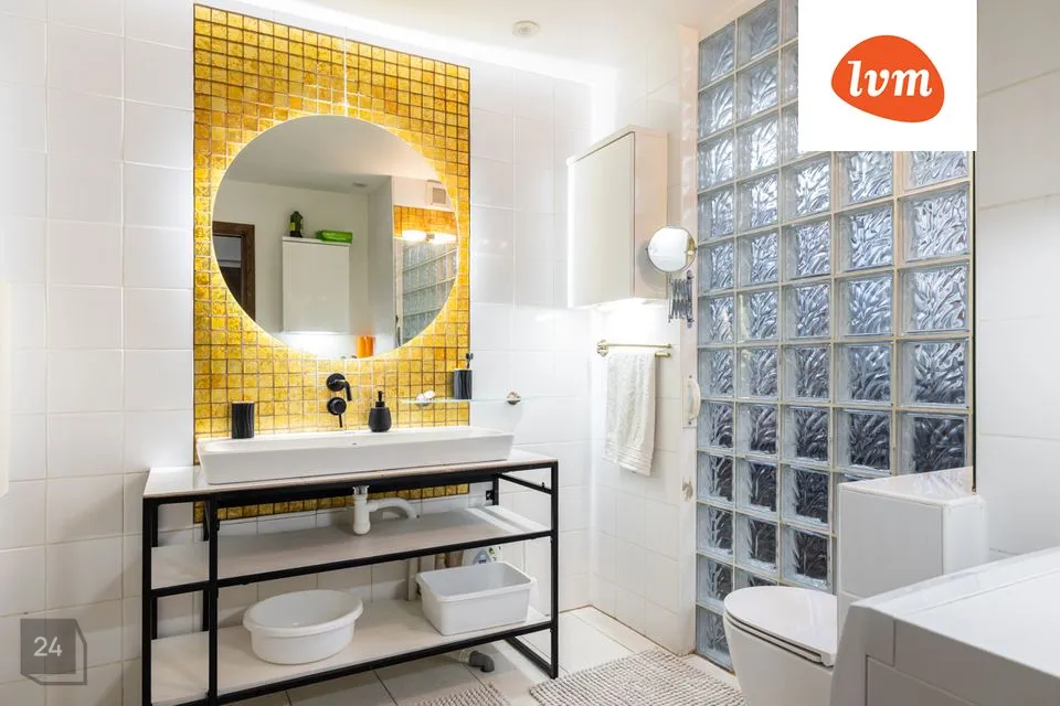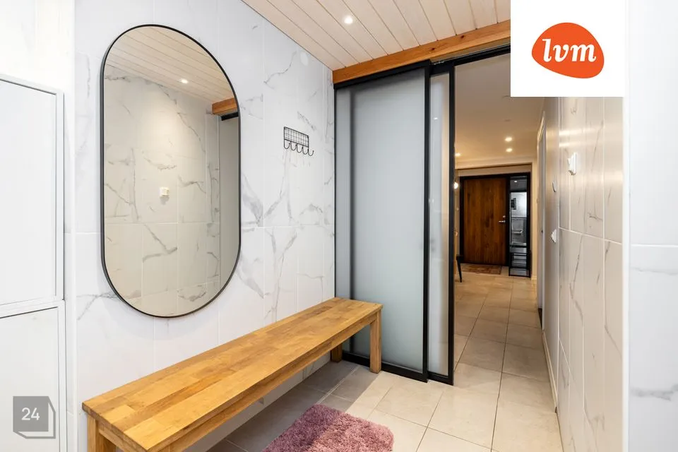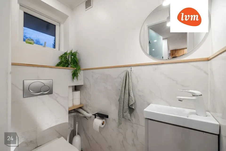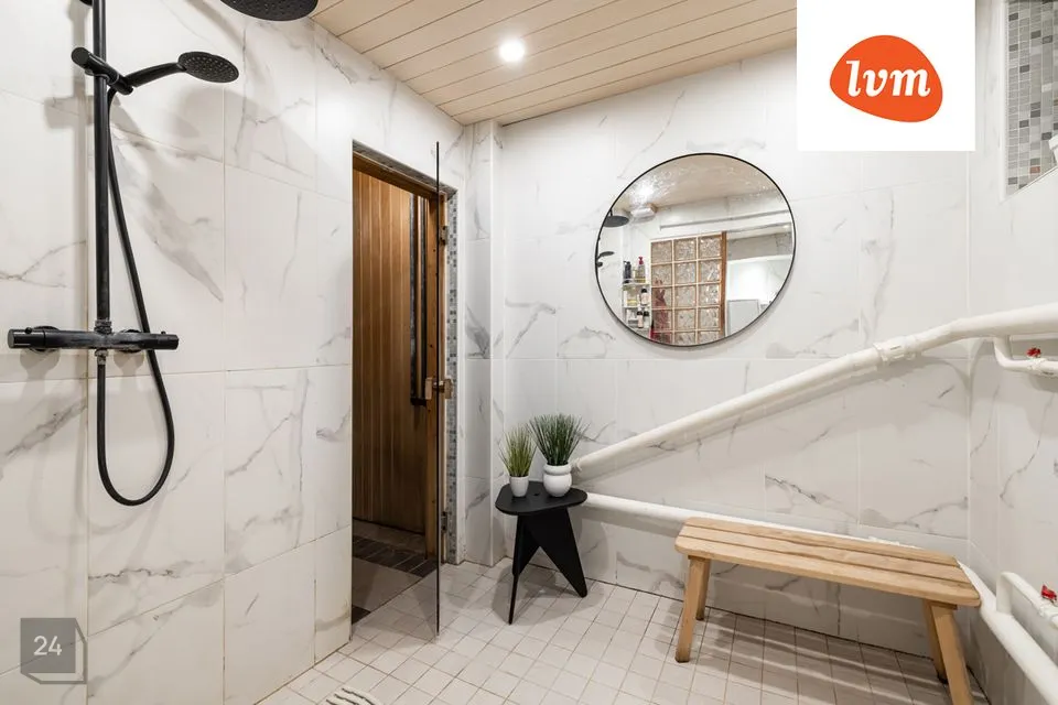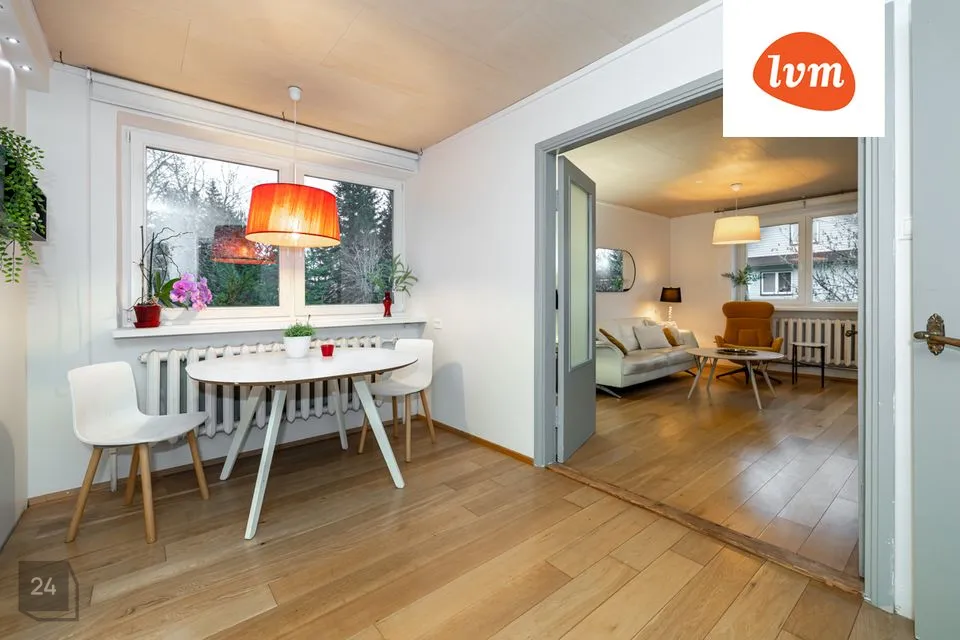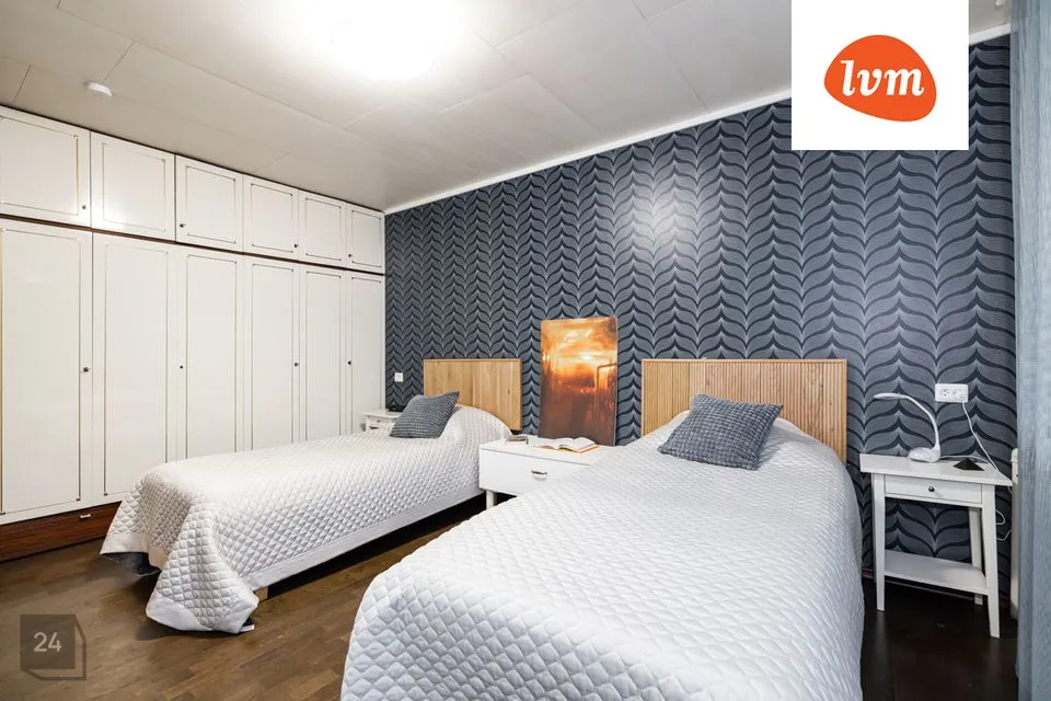 Põrandaid katab osaliselt puitparkett, osaliselt vinüülparkett ning pesuruumid on plaaditud.