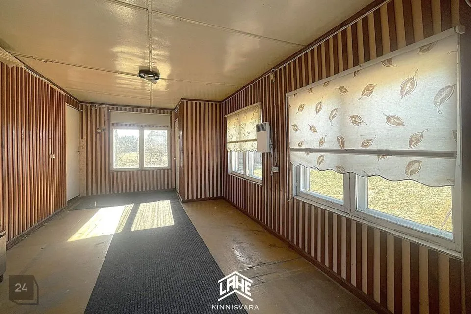 • Ruumikas elumaja suurusega 95,5 m2 – planeeringult on siin avar esik, köök, kuivkäimla ning 3 suurt tuba. Võimalus välja ehitada ka 2. korrus. Maja vajab kapitaalset renoveerimist.