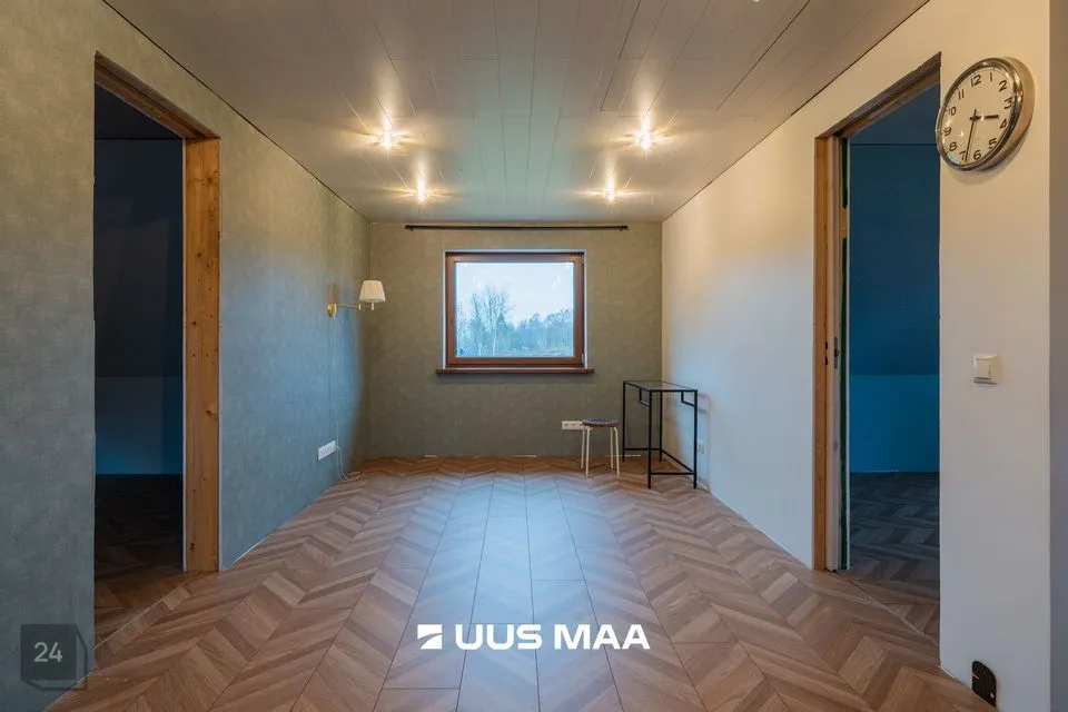 120 m² elamispinda, 180 m² kogupinda. Kogu kinnistu suuruseks 14,5ha, hetkel mõõdistatakse müüdava kinnistu juurde 2ha maad. Kogu maast 2,55ha haritavat maad, 3,44ha looduslikku rohumaad, 7,4ha metsamaad ja 1ha õue- ja muud maad. Maad on võimalik ka juurde osta.
