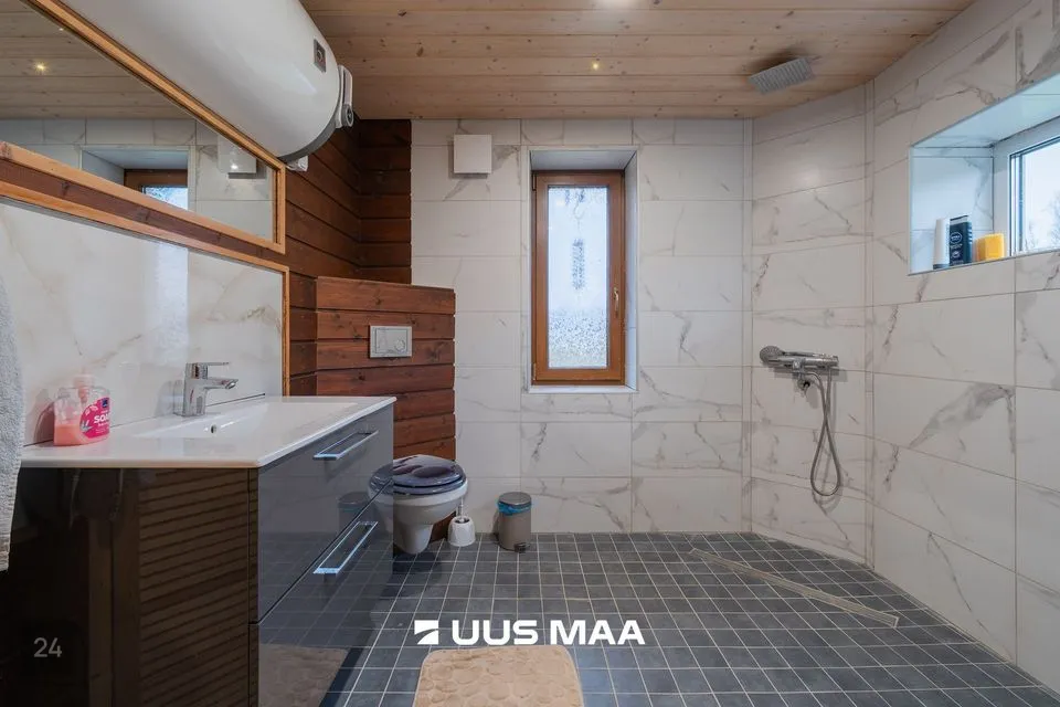 - Alumisel korrusel: avar elutuba avatud köögiga (12 m²), esik ja dušširuum koos WC-ga