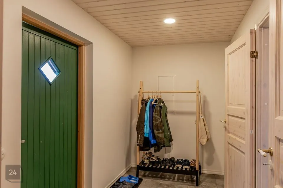 • Siseviimistlus seest väljapoole: mikrotsement, värv, kipsplaat, aurutõkke paber, kivivill (50x50), puitkarkass (50x150), tuuletõkkeplaat, distantsliist, voodrilaud, mis värvitud Vivacoloriga.