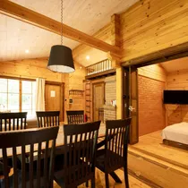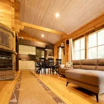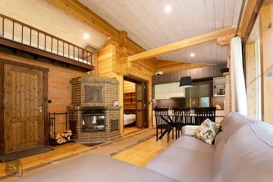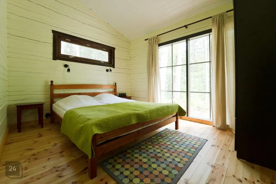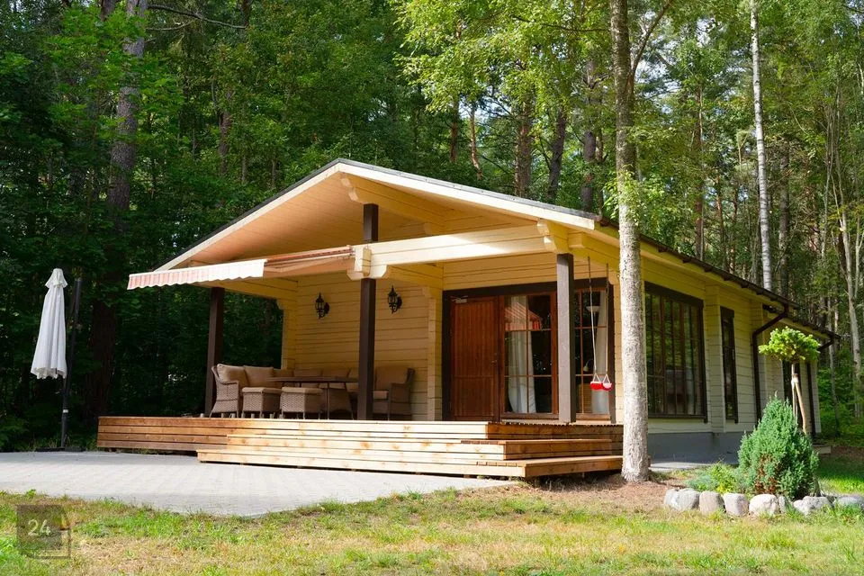 Peamaja on ehitatud 150mm freespalkidest, on suure 30m² terrassiga. Katus bituumen sindlist. Hoones on üks magamistuba, avar elutuba kaminahjuga, dušhiruum ja saun. Elutoas sisseehitatud köök, söögilaud ja mugav diivan.