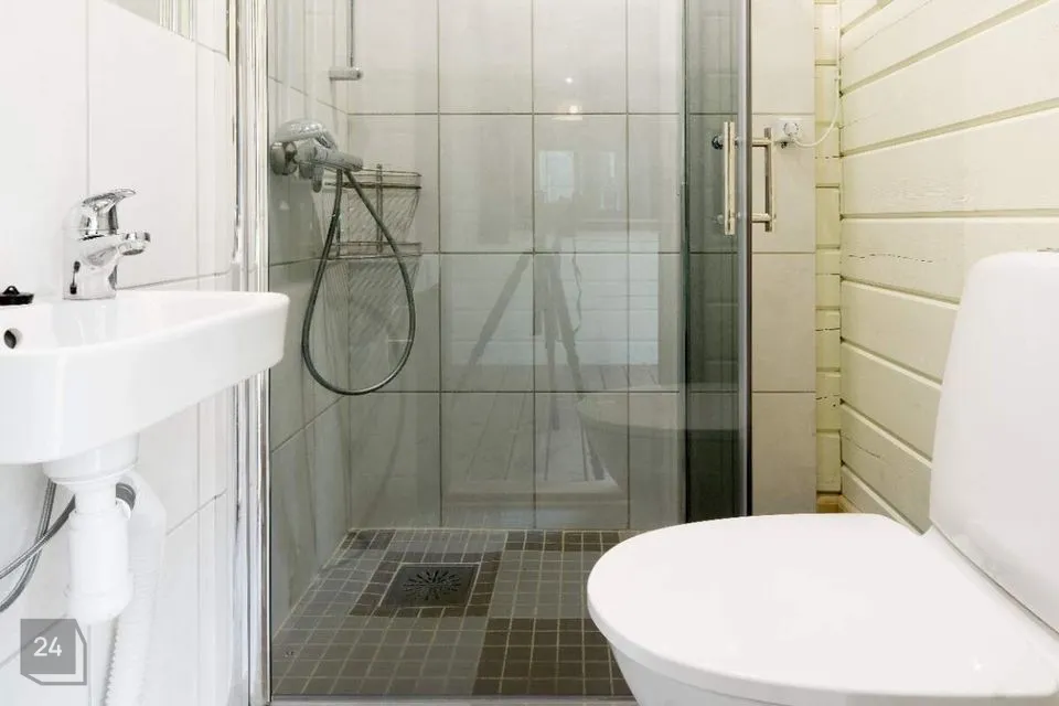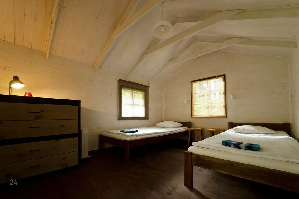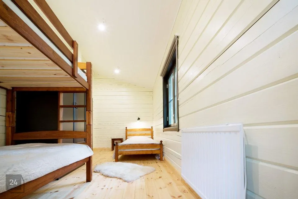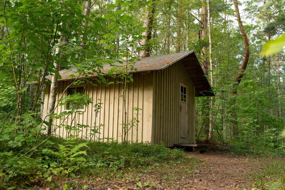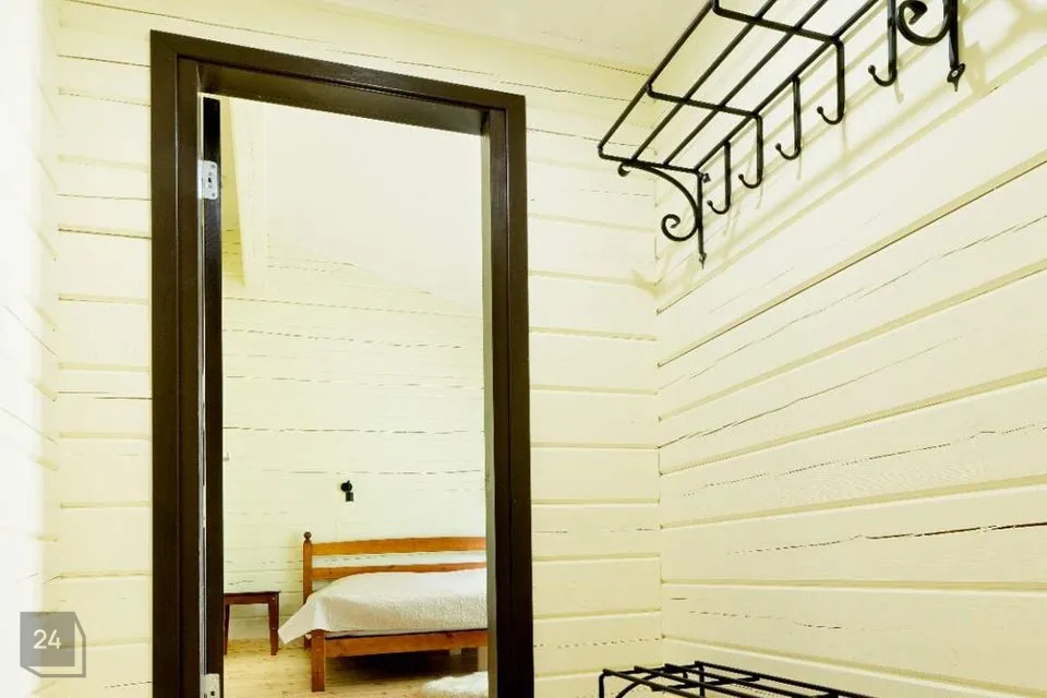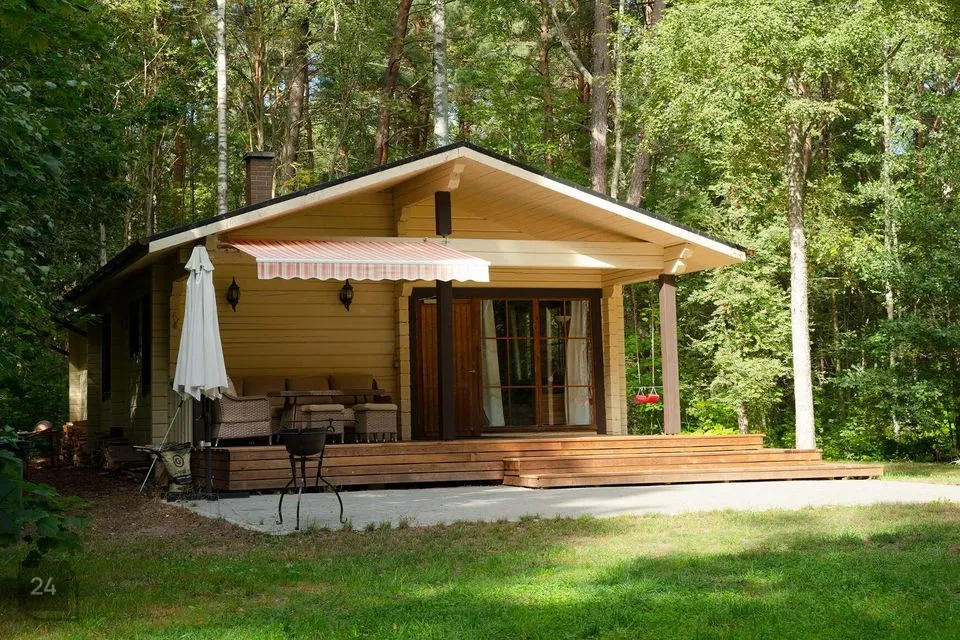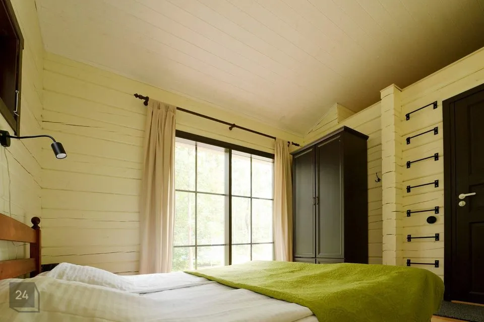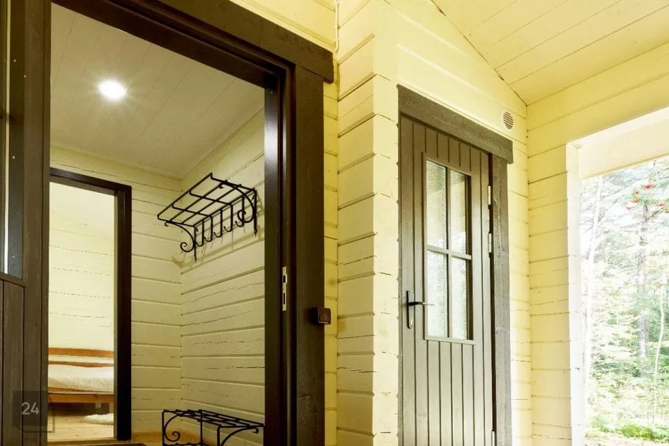 Hoovimaja on samuti palkhoone bituumensindel katusega. Seal on kaks magamistuba ja wc-dušhiruum ja 12 m² suurune terrass.
