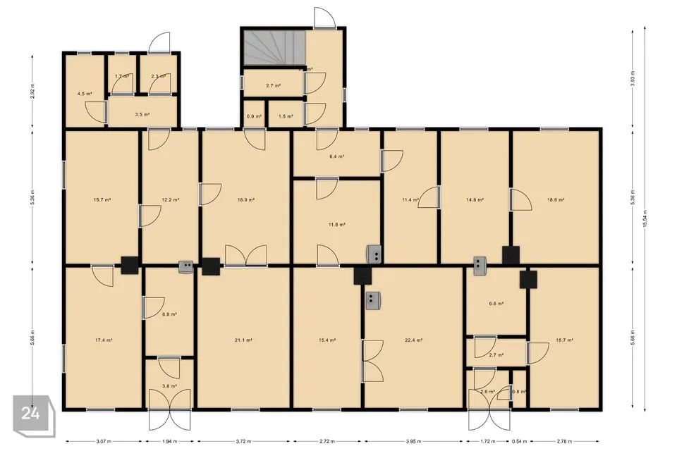 Ruumikasse üheksa korteriga kahekordsesse hoonesse mahub ära nii Sinu pere, kui ka pereäri kohviku, restorani või muu teeninduspinna näol. Esimese korruse 2,9 m kõrged laed, kahepoolsed paraaduksed ja paindlik ruumiplaneering annab võimaluse oma pikaaegne unistus ellu viia. Maja on võimalik muuta ka majutusasutuseks või kasutada rendikorteritena nagu tehti seda ka algupäraselt ligi 100 aastat tagasi.