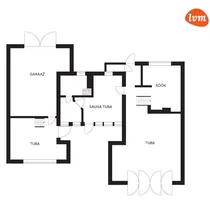 Esimene korrus – suur elutuba, köök, saunakompleks (saun, dušš, tualett), lisaks magamistuba.