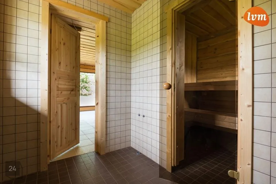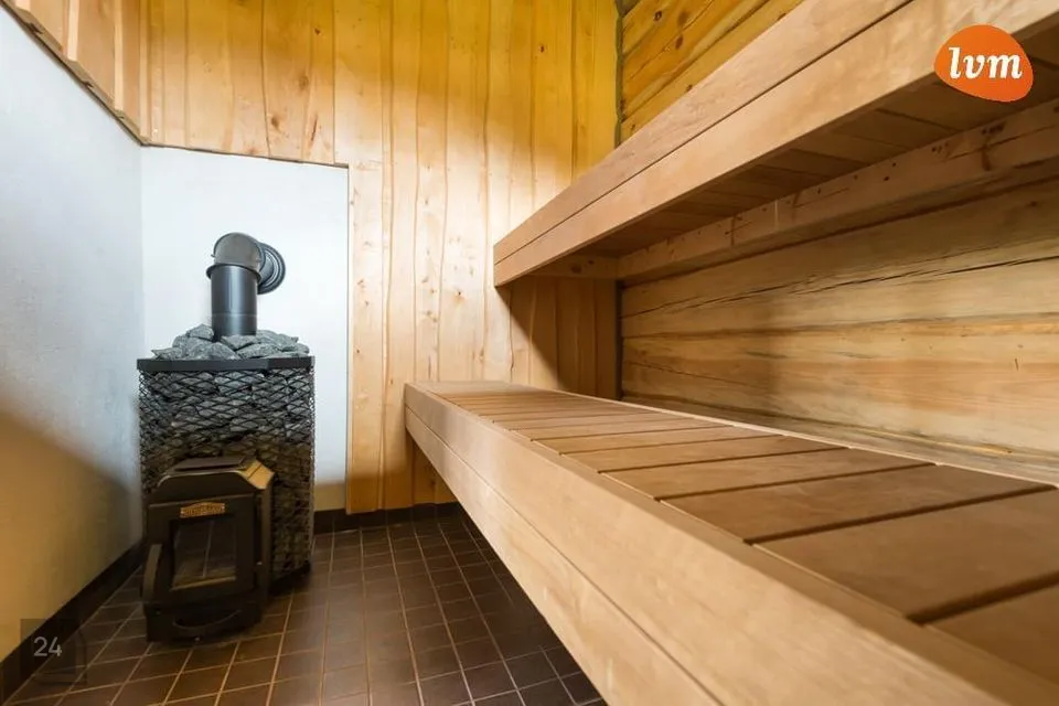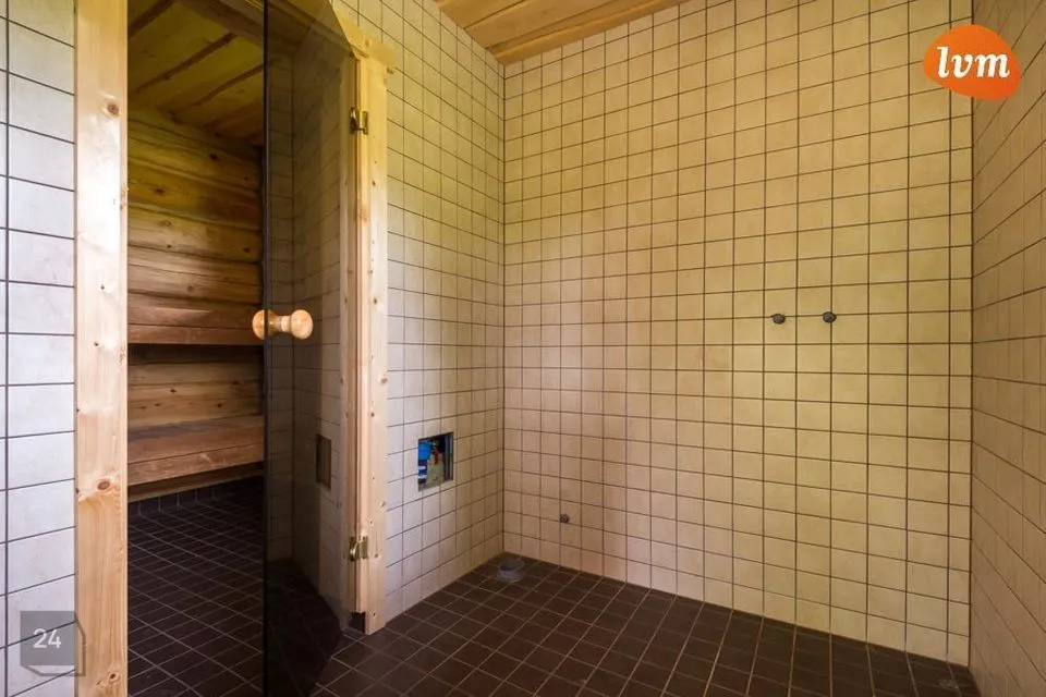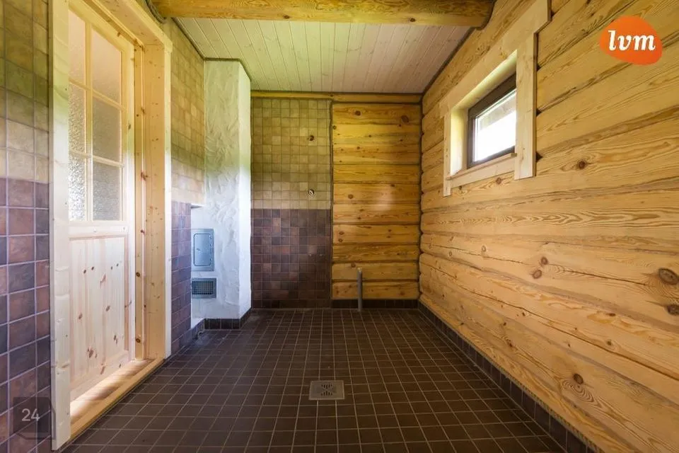 Saunamaja on 50 m2 suur, samuti kahe korruseline, esimesel korrusel puhkeruum ja saunaruumid ning ülal avatud magamiskorrus.