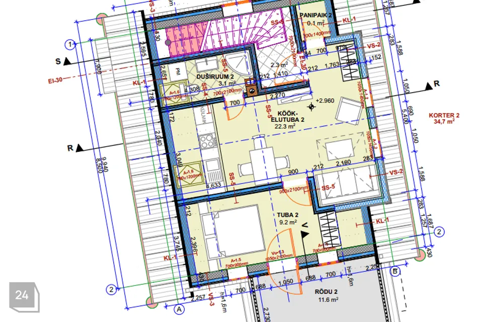 Maja on müügis ühe üksusena, aga soovi korral saab seda oma pere vajadustele vastavalt kasutada ka eraldi korteritena. Saan ümberkorraldust selgitada koha peal.