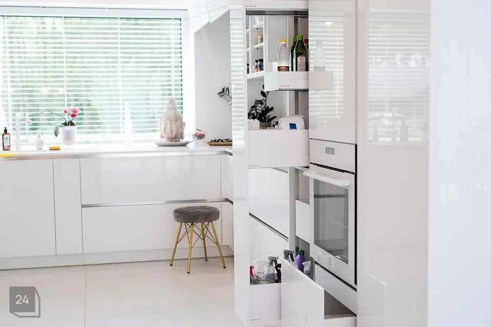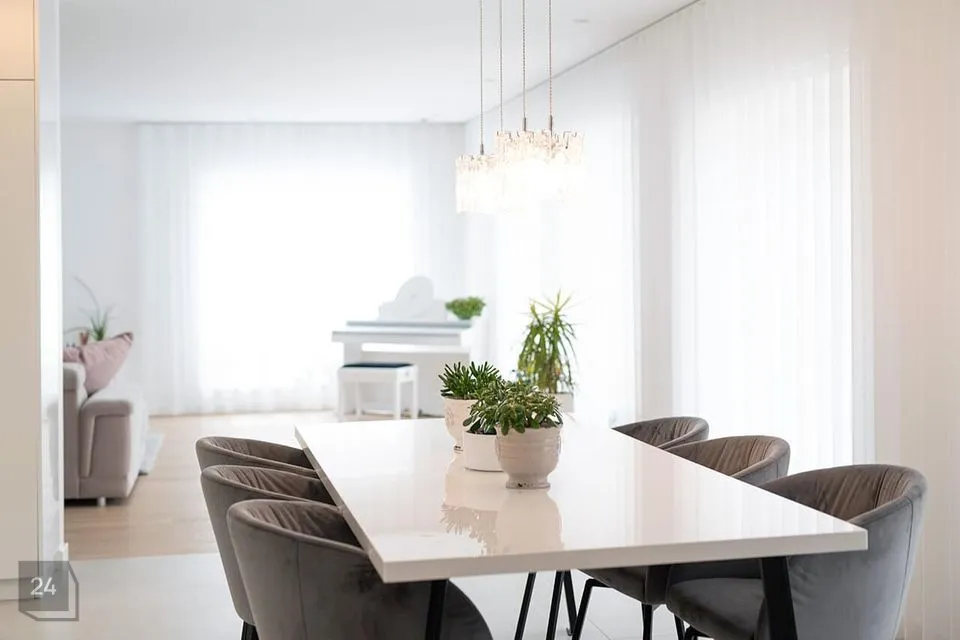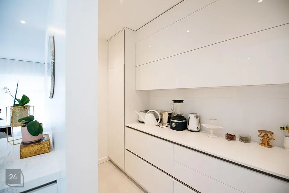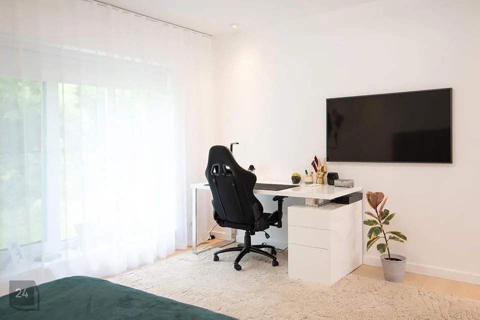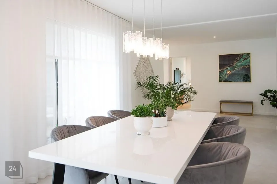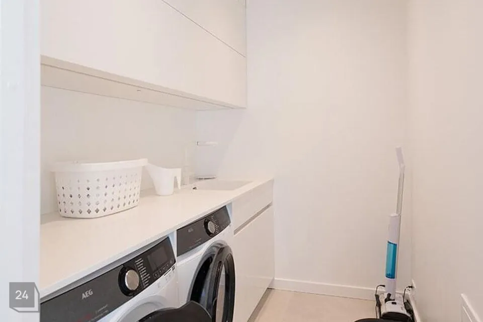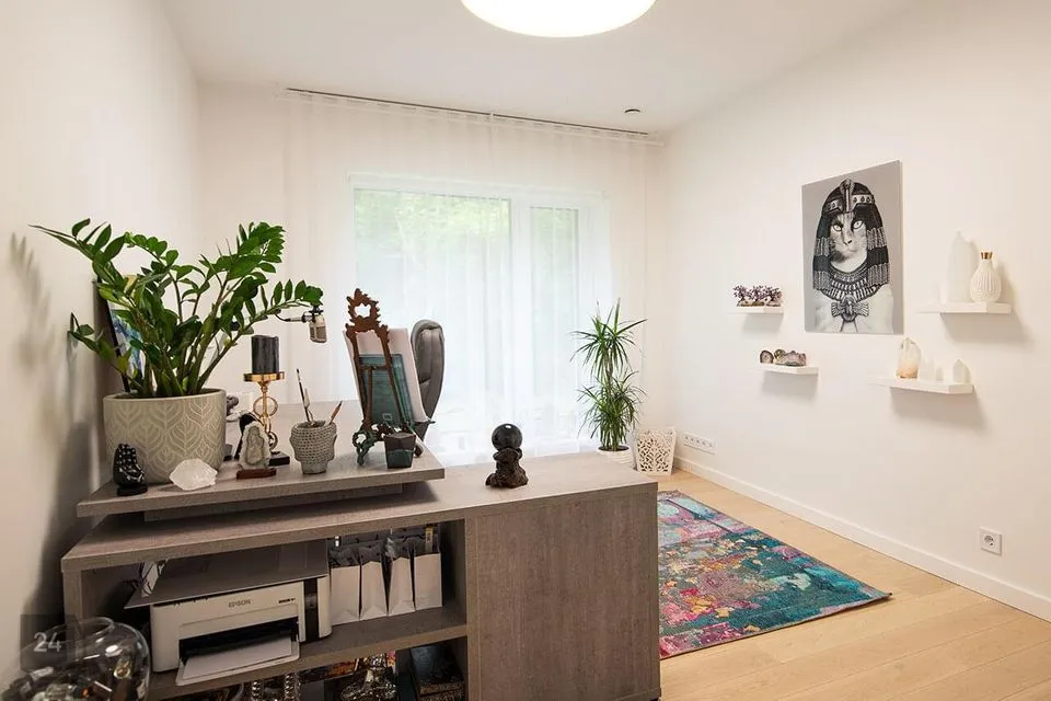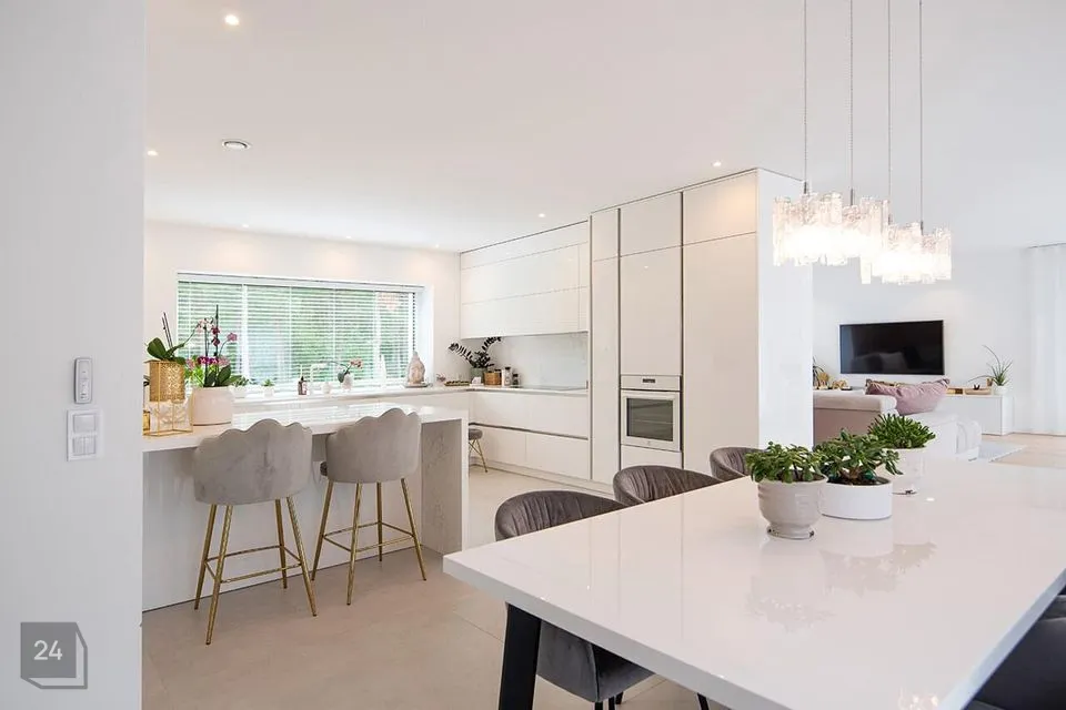 Aknalauad, abiruumide tasapinnad, köögimööbli töötasapinnad koos saarekesega köögis on tehtud presskivist. Elektrirulood akendel, eraldi põrandakütte kontuurid. Ventilatsiooni on võimalik igas ruumis eraldi reguleerida. Köögi ja abiruumide integreeritud tehnika jääb koos mööbliga sisse. Köögimööbli uksed ja sahtlid on vaikselt sulguvad ning ülemiste kappide uksed mootoritega avatavad/sulguvad. Tubades olevad põhimööbli elemendid jäävad sisse.
