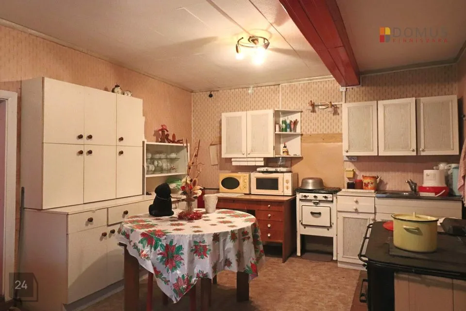 1900. aastal ehitatud, renoveerimist vajav, eterniitkatusega palkhoones on köök, kolm tuba, esik, vaheruum ja laut. Pesemisvõimalus ja tualett majas puuduvad, samas on piisavalt ruumi nende välja ehitamiseks. Hoones on elekter, kuid vesi ja kanalisatsioon puuduvad.