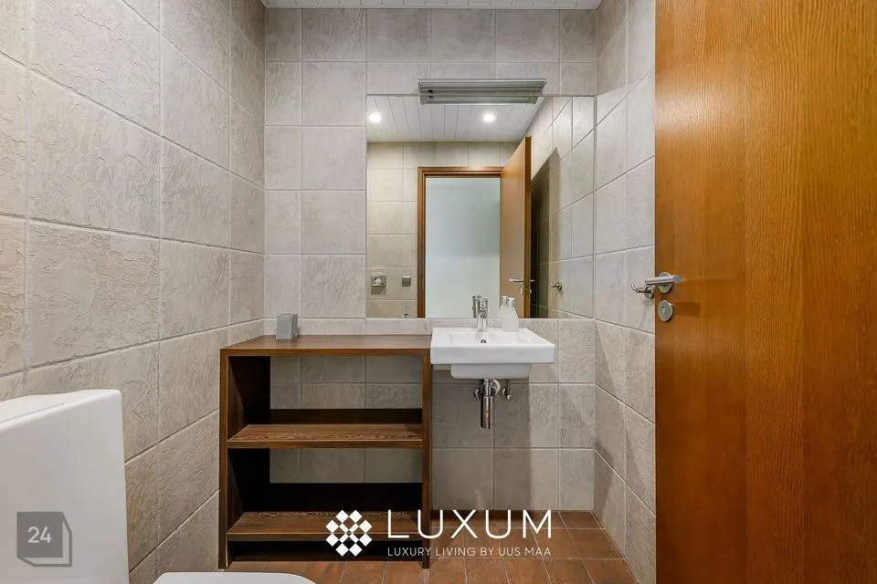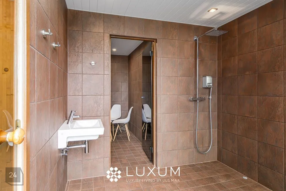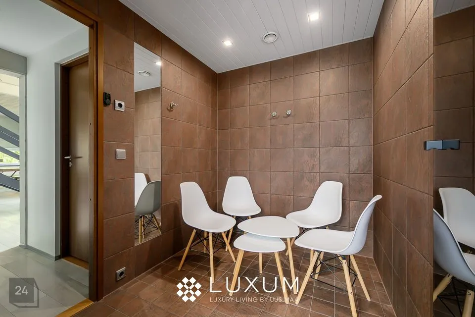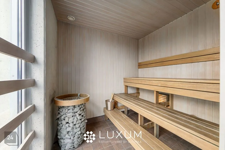 Sauna eesruumis on mugav korvmööbel, terrassil puidust lamamistoolid. Külastajatele on Villa Driver’i poolt kasutamiseks saunamantlid ja -rätikud.