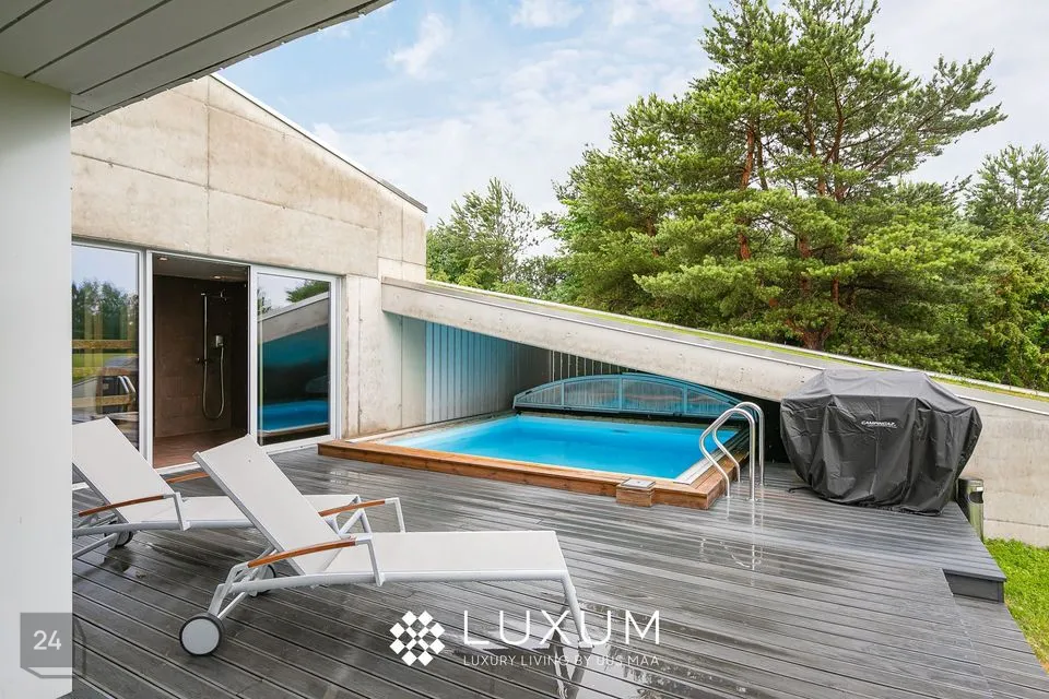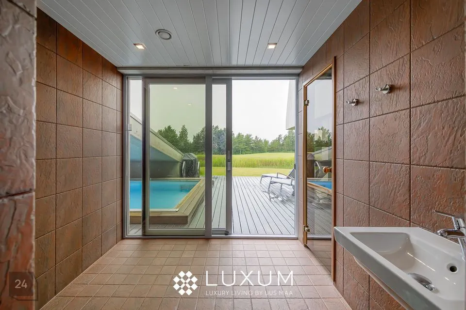 Villa külastajad saavad lõõgastuda saunas. Otse saunast saab end karastama minna välibasseini.