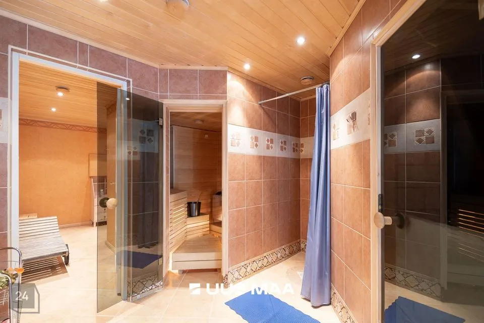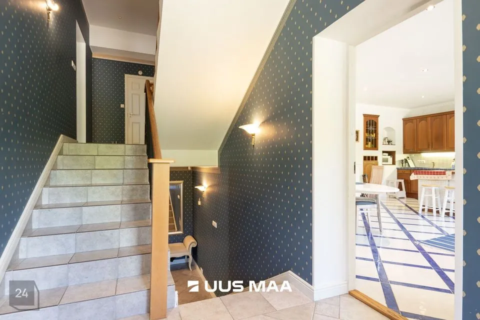 Teisel tasapinnal paikneb avar köök ning pool korrust ülespoole paiknevad elutuba, üks magamistuba, wc ja abiköök, saunaruumid ja kaminasaal pääsuga suurele terrassile ning kaks panipaika. Järgmisel tasapinnal paiknevad kaks magamistuba wc-vannituba ja garderoob ja abiruumid.