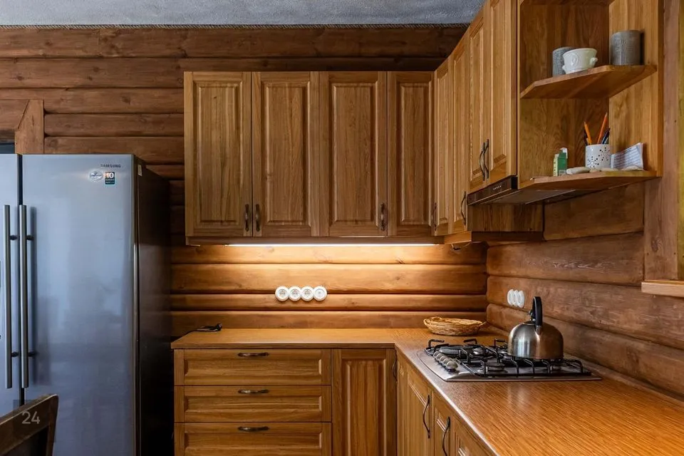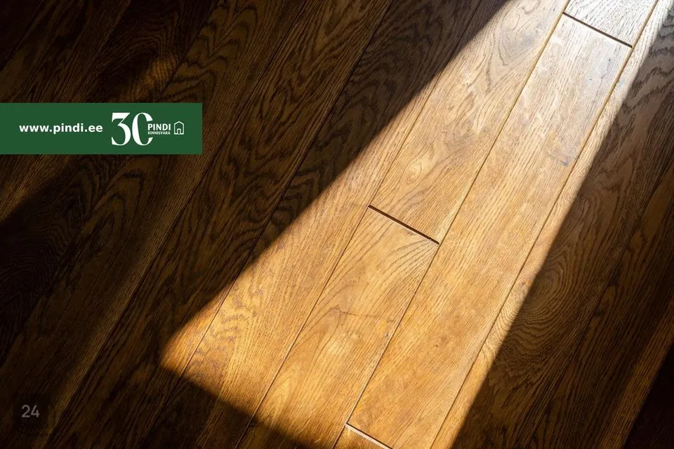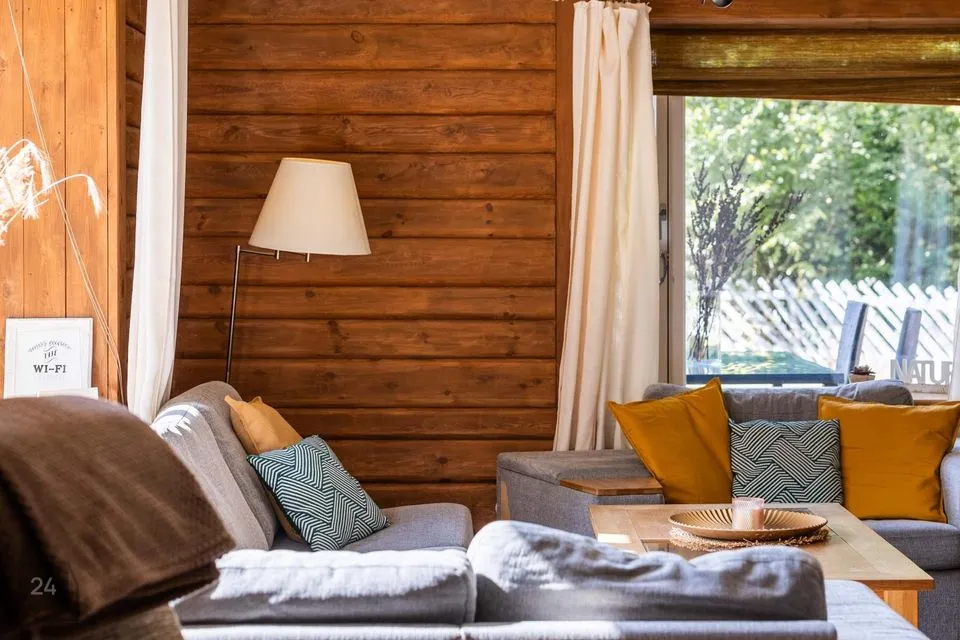 Põrandatel on kasutatud tumedat tamme laudparketti. Hubasuse ja soojuse andmiseks on hooned seest poolt kaetud täispuit laudisega. Samuti kõik siseuksed on täispuidust.