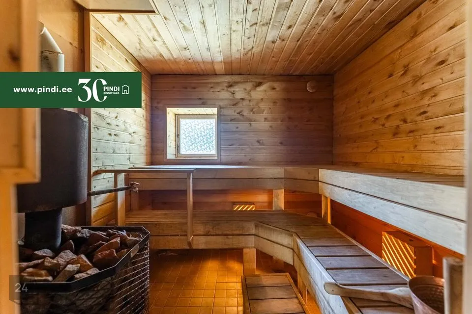 Saunamajas on lahedalt ruumi ka suuremale seltskonnale, et nautida koosolemist ja lõõgastuda. Sauna eesruumi istumisala on avar ning lisaks saunaahjule on eesruumis ka massiivne soojustsalvestav ahi, mis aitab hoida ruumid mõnusalt soojana pikema aja jooksul. Saunas on suur kahe dushiga pesuruum, ruumikas leiliruum ning WC, pakkudes kõiki vajalikke mugavusi.