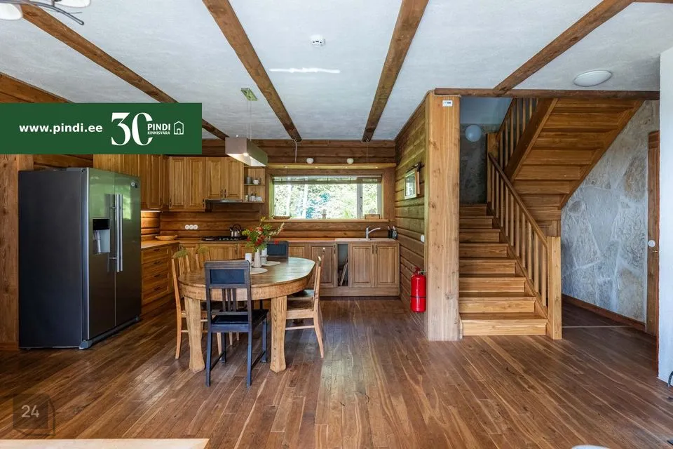 I KORRUS: Majja sisenedes on avar tuulekoda, millest on juurdepääs esimesel korrusel asuvale privaatsele WC-le, tehnoruumi ja valgusküllasesse köök-elutuppa. Kaminahju ja tammepuidust mööbliga köök-elutuba on varustatud kõige eluks vajalikuga. Köök-elutoast pääseb elamu lääneküljel asuvale katusega puit-terrassile.