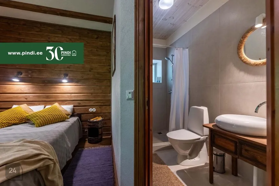 Lisaks asub esimesel korrusel magamistuba, millel on oma privaatne WC ja duširuum ning lisakütmise võimalusena ka väike stiilne raudahi.