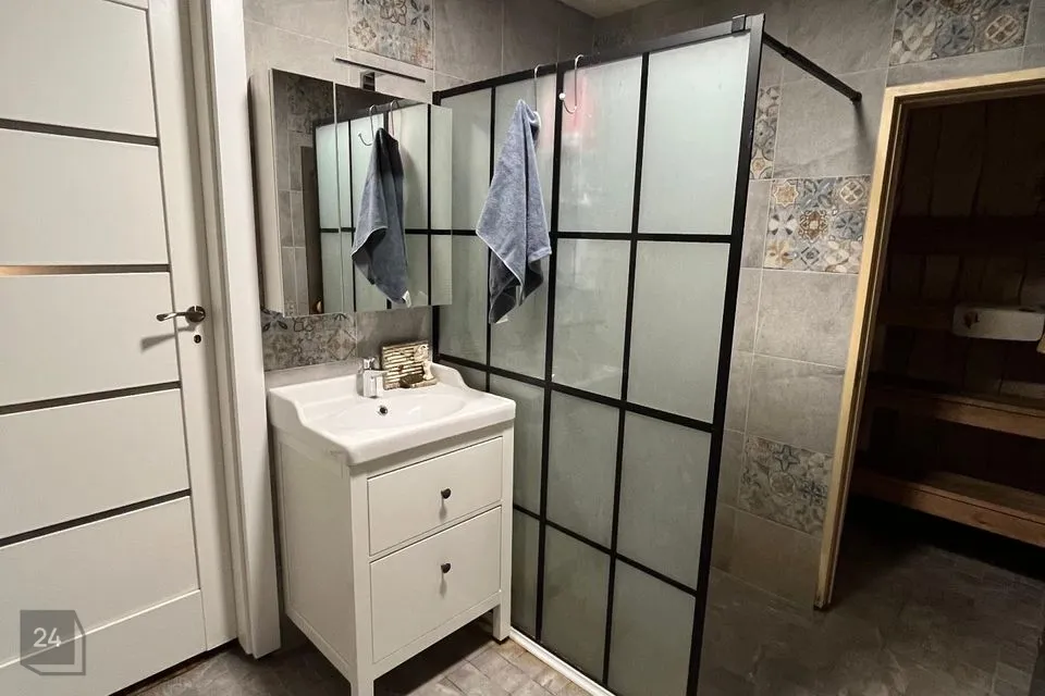 Põrandatel on allkorrusel kiviplaadid ja puitparkett, üleval korrusel laminaat. Vesi ja kanalisatsioon on tsentraalsed, torud ja elektrijuhtmed on vahetatud, pluss on veetud ka torud õhk-vesi pumba jaoks söögituppa ja saunaruumidesse.