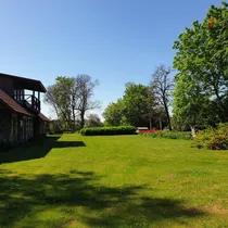 Ilusti hooldatud õuealal on veel ilus vana palkait, katusealune suviseks istumiseks ja grillimiseks, täitsa uus (hetkel ilma sise- ja välisviimistluseta) saunahoone. Suur tiik, kuhu saab suvel sooja ilmaga või saunaõhtul, sisse hüpata.