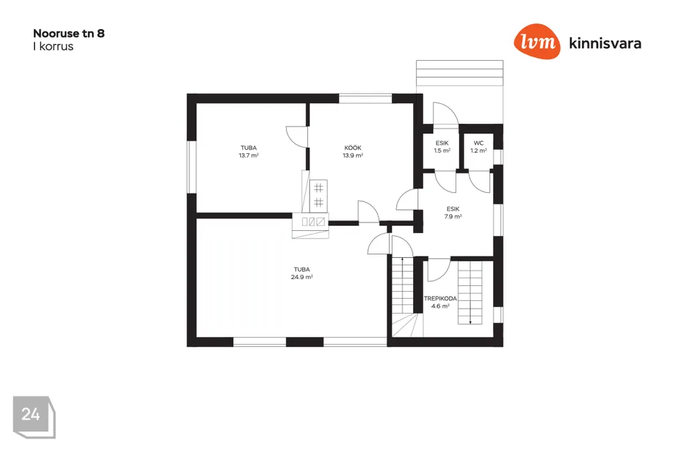 I korrus: Alustatud kapitaalremondiga – põrandad eemaldatud, seinad avatud kuni varasema soojustuseni. Pliit ja soe sein vajavad uuendamist. Ideaalne võimalus luua uus planeering ja viimistlus vastavalt oma soovidele.