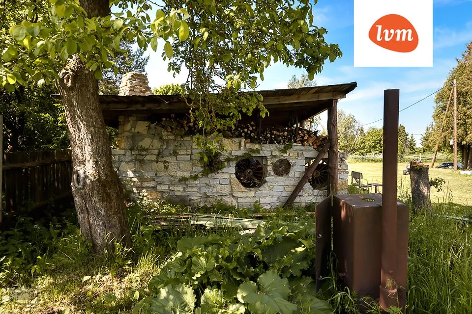Kõrvalhoones saun, magamiskohad. Ilus suur ja avar katusealune välikamina ja tugeva palkmööbliga (laud, pingid). Siin on kindlasti mõnus sõpradega peale sauna lõõgastuda ja suveõhtuid nautida.