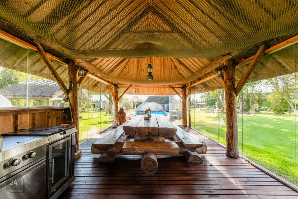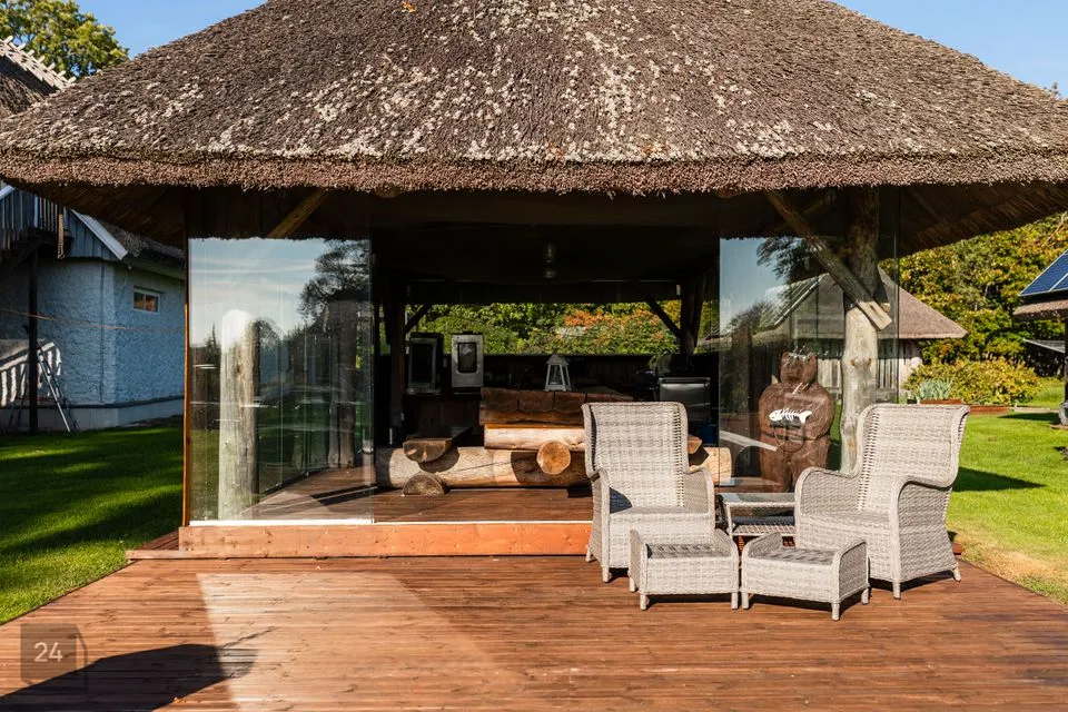 *Klaasitud väliköök ja grillimaja koos terrassi ja välidušiga