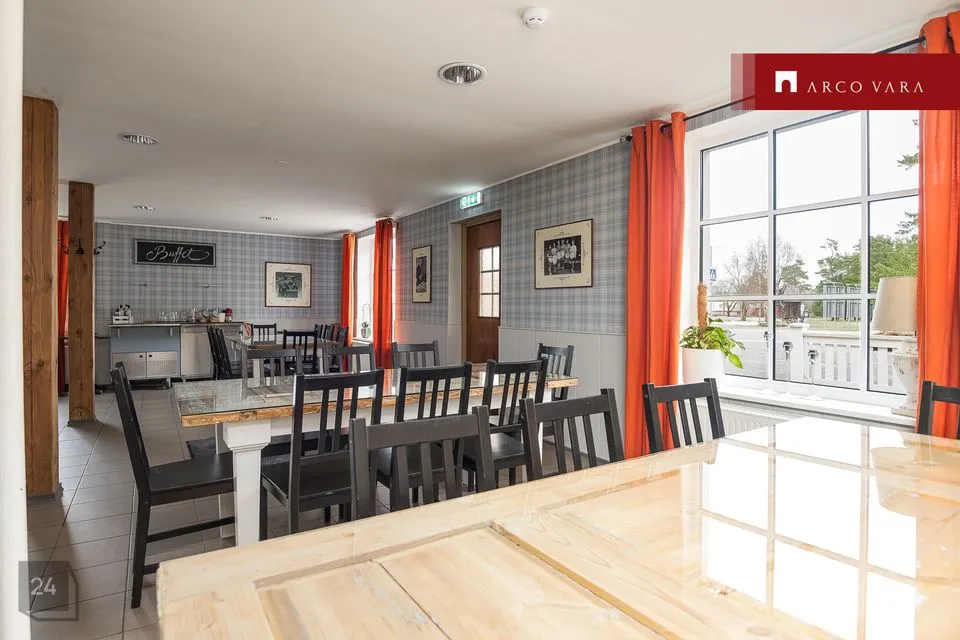 Hoone 1. korruse põhiruumid on järgmised: avar möbleeritud söögisaal kuni 40 kohta, eraldatud seminariruum, teenindusala, täissisustusega köök, kontor-personalituba, sanitaarruumid ja trepikoda, millest trepp viib teisele korrusele.