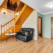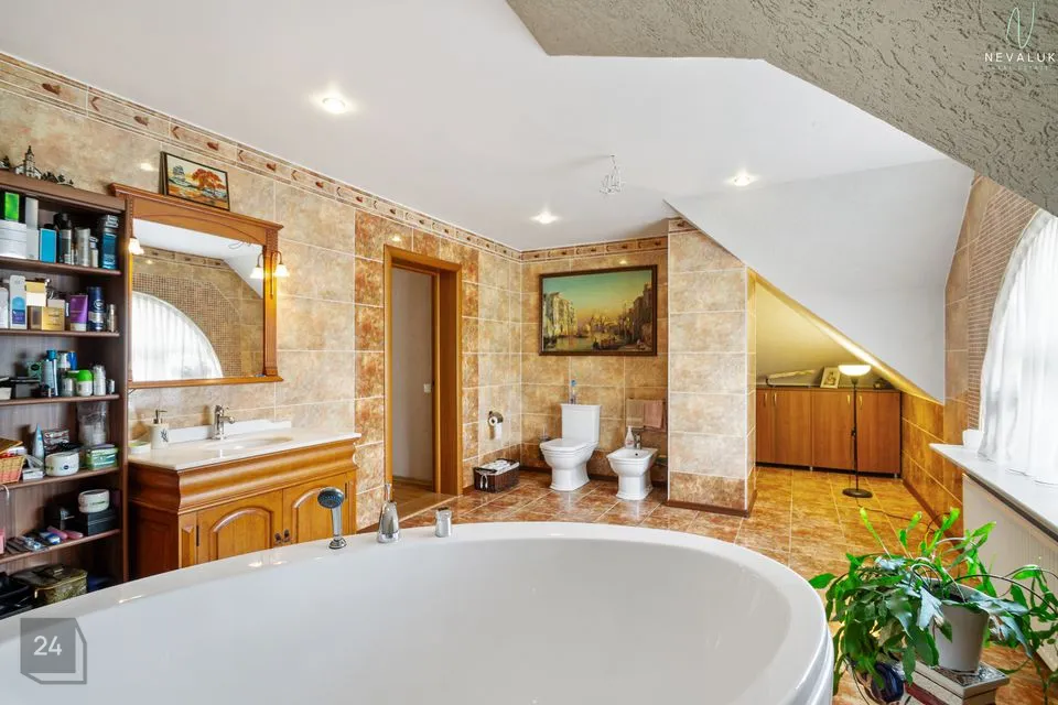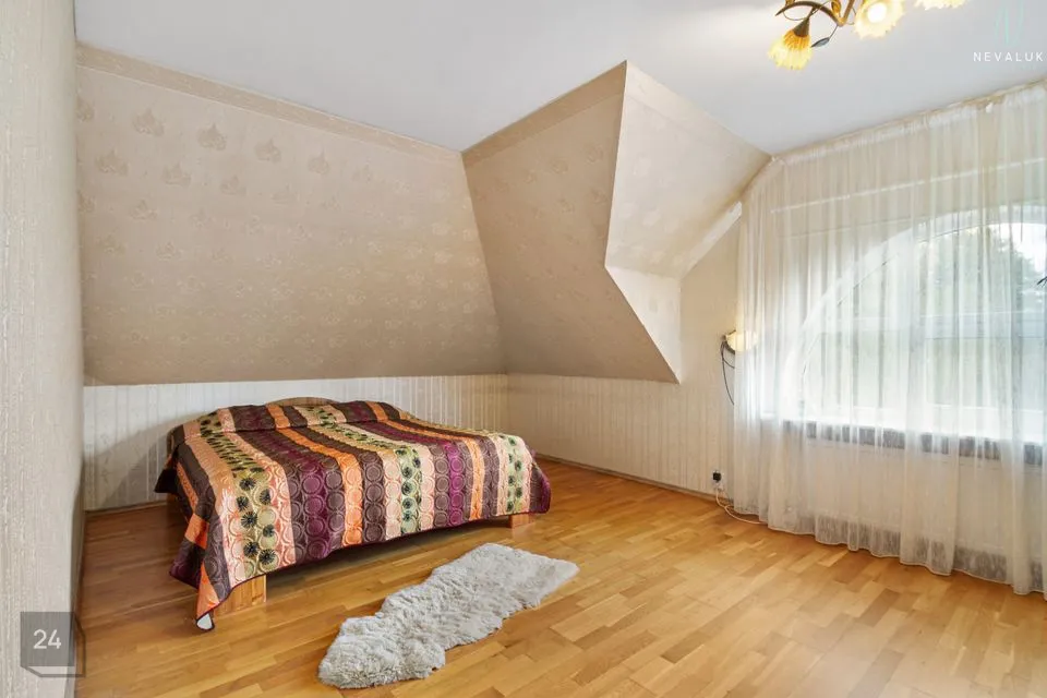 Majas on kokku viis tuba – piisavalt ruumi nii pere igapäevaeluks kui ka külaliste vastuvõtuks. Teisele korrusele viib pilkupüüdev puidust trepp, kus ootavad kolm avarat magamistuba. Suurimaks pärliks on aga kuningliku mõõduga vannituba, kus 200-liitrine vann kutsub lõõgastuma ja suured kaaraknad toovad tuppa rohkelt valgust. Ühes magamistoas on ka rõdu, kust avaneb vaade oma kaunile aiale – ideaalne koht, et hommikupäikest tervitada.
