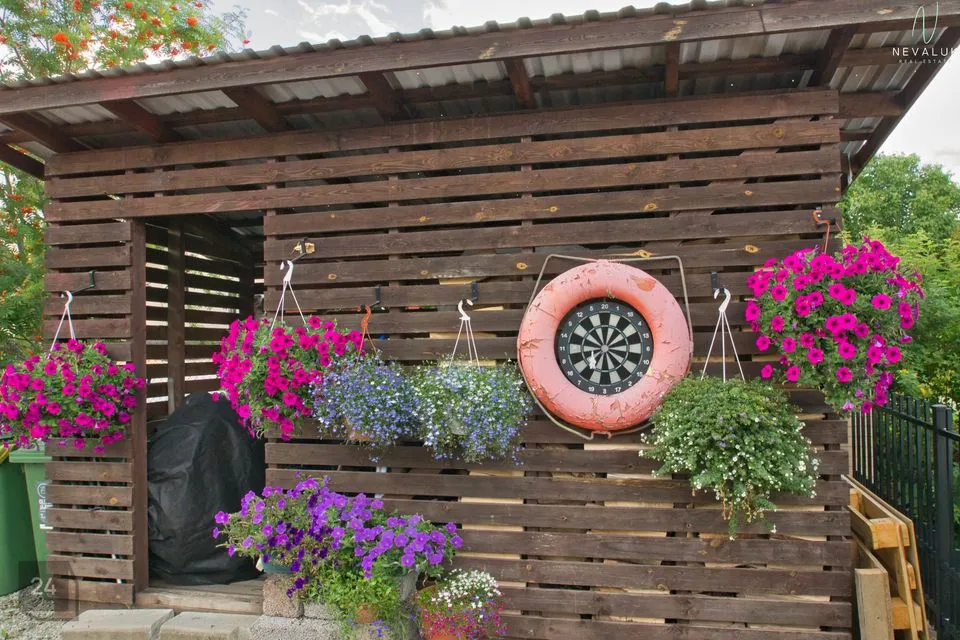 Selle kodu sisemus on sama soe ja kutsuv kui aed. Esik viib edasi avarasse elutuppa, mille südameks on NunnaUuni Mammutti voolukivist kamin – tõeline hubasuse looja, mis toob talveõhtutesse soojust ja säästab samas ka küttekuludelt. Elutoaga harmoneerub valgusküllane köök, mille heledad toonid ja must marmorist tööpind annavad kodule modernse ilme. Köögist avaneb otsetee terrassile, kust sammud viivad edasi tagahoovi rohelusse.