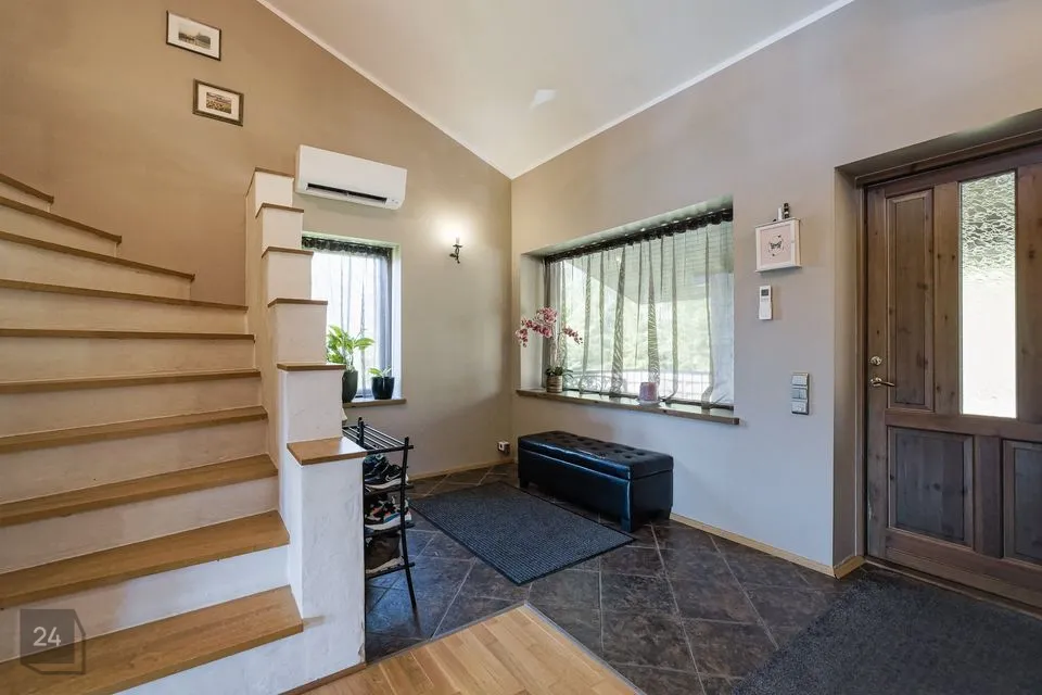 Esimesel korrusel - suur esik, köök koos söögitoaga, millest hetkel on tehtud armas laste mängutuba, suur elutuba koos kamina ja töönurgaga, tualettruum ning garderoob. Elutoast on pääs 15m2 suurusele mõnusale terrassile, mida saab nautida vähemalt 9 kuud aastas - suvisel ajal pakub sellel terrassil varju ja privaatsust lopsakas roheline metsviinapuuhekk.
