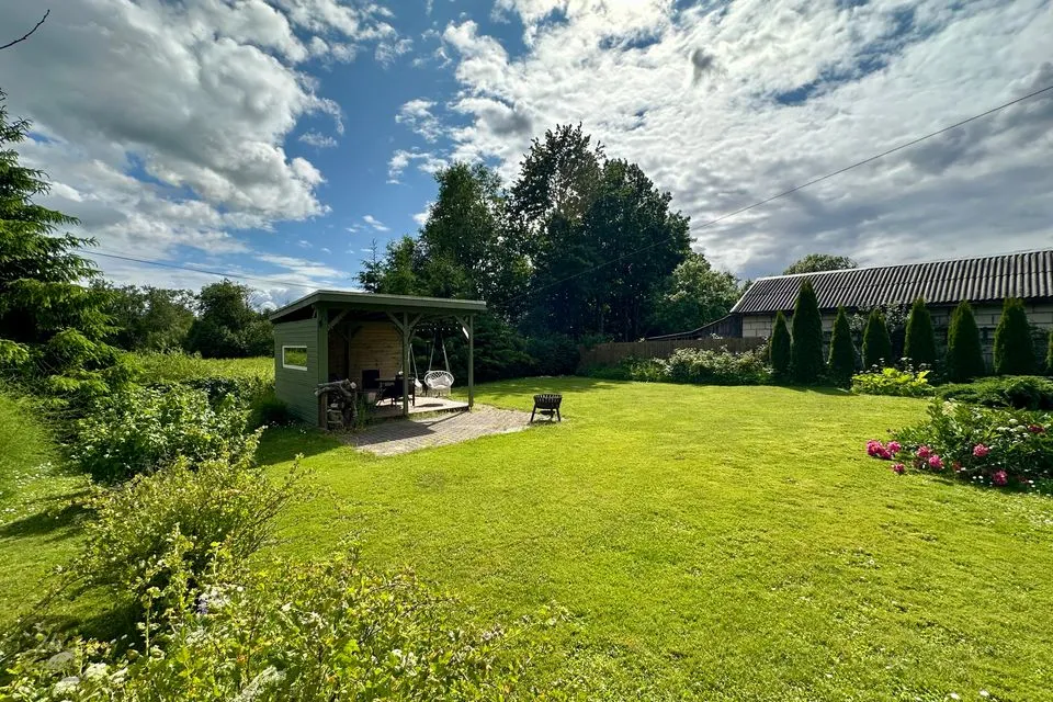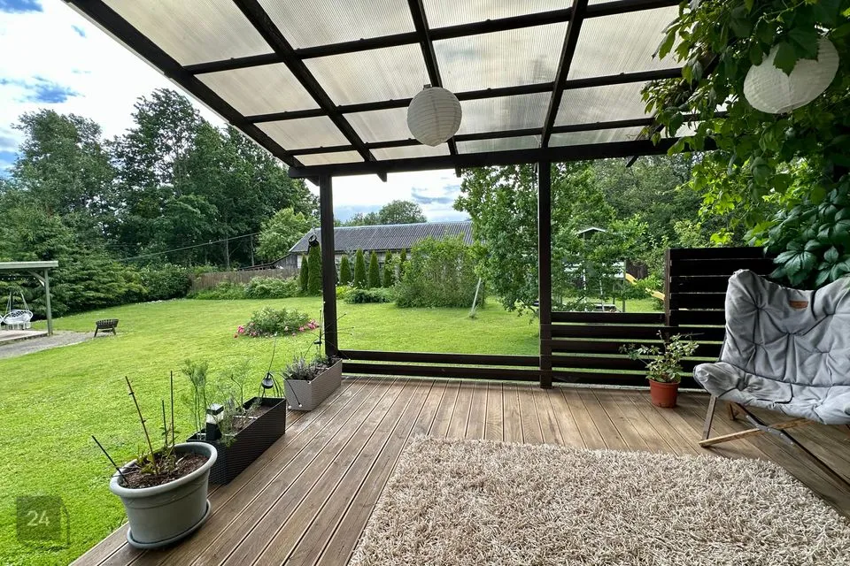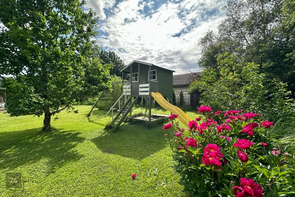Päikese nautimiseks on maja taga suur terrass ning lisaks on 20 m2 varjualune-istumisnurk, kus saab grillida ja õhtupäikest nautida. Pere pisematele on loodud vahva mängumaja koos liumäe, liivakasti ja kiikedega.