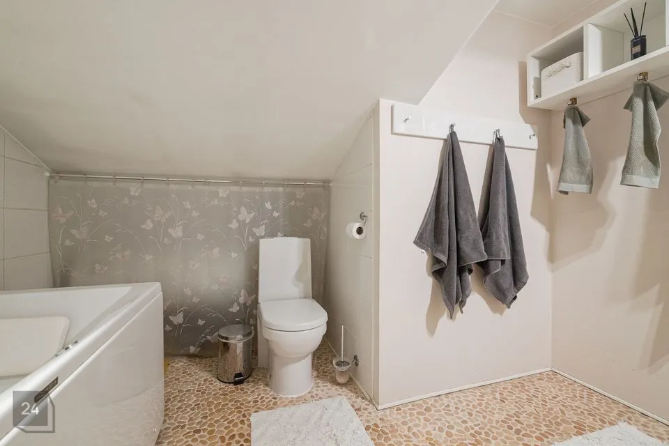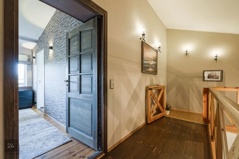 Teisel korrusel - vannituba/tualettruum, 4 magamistuba, millest ühes on suur garderoob koos Liuglev Uks garderoobisisuga ning panipaik. Ühest toast on pääs ka rõdule, kust avaneb heinamaale ja jõele avar vaade.