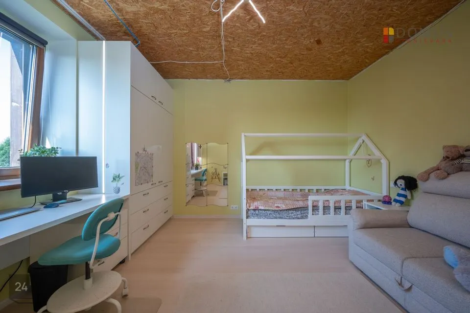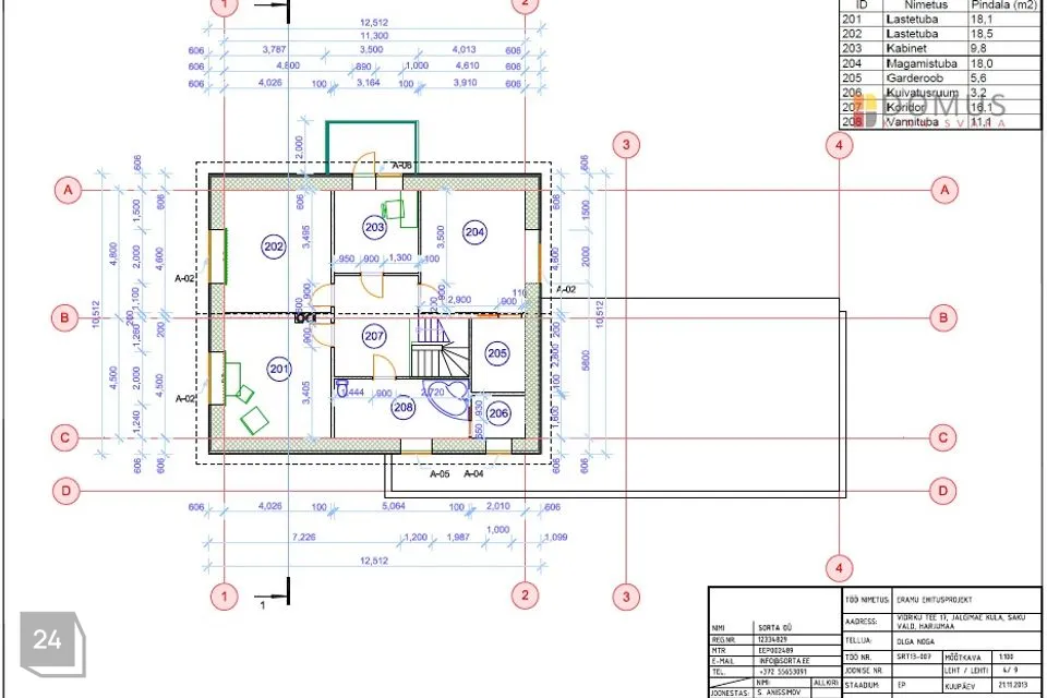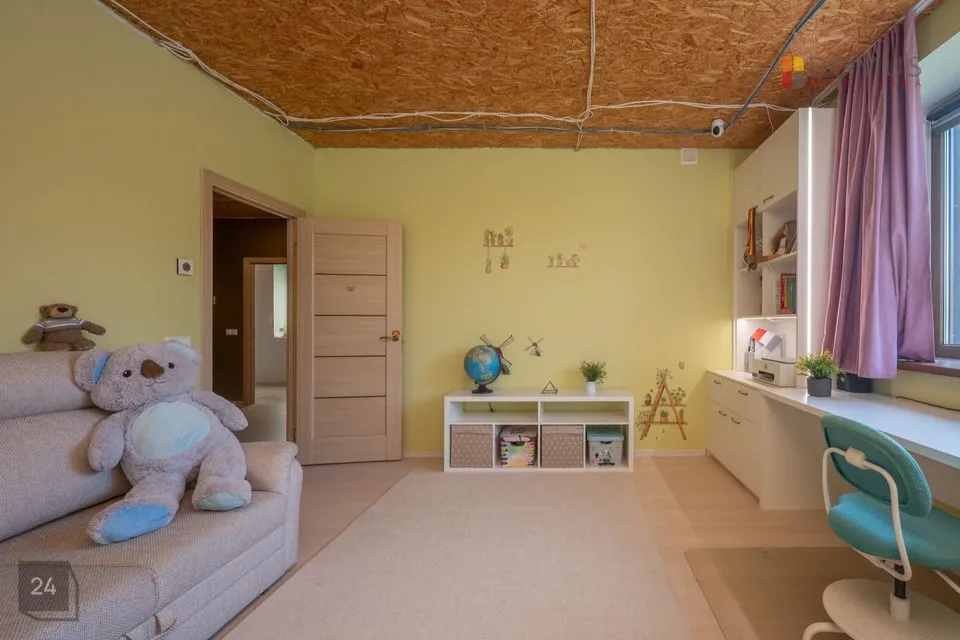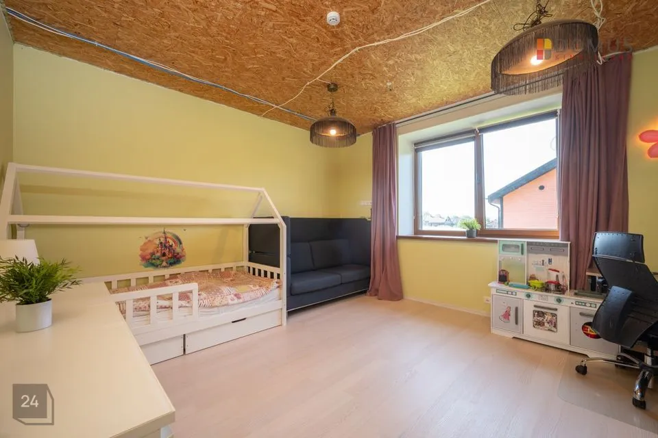 II korrus: trepihall, kaks lastetuba (päikesevalgus terve päeva), avar master-bedroom koos walk-in garderoobiga, kabinet/lisatuba, suur vannituba, kuhu saab soovi korral sauna planeerida ja abiruum. Põrandatel naturaalne saareparkett, mis lisab hubasust ja vastupidavust.