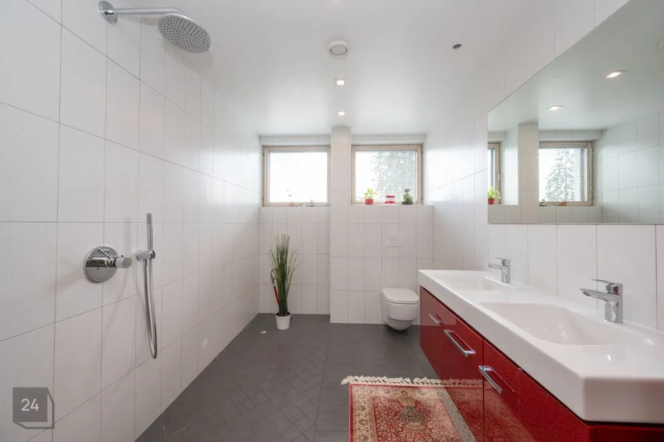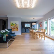 Maja interjöör on heledates toonides ja kvaliteetsete materjalidega viimistletud. Tubades naturaalne parkettpõrand.