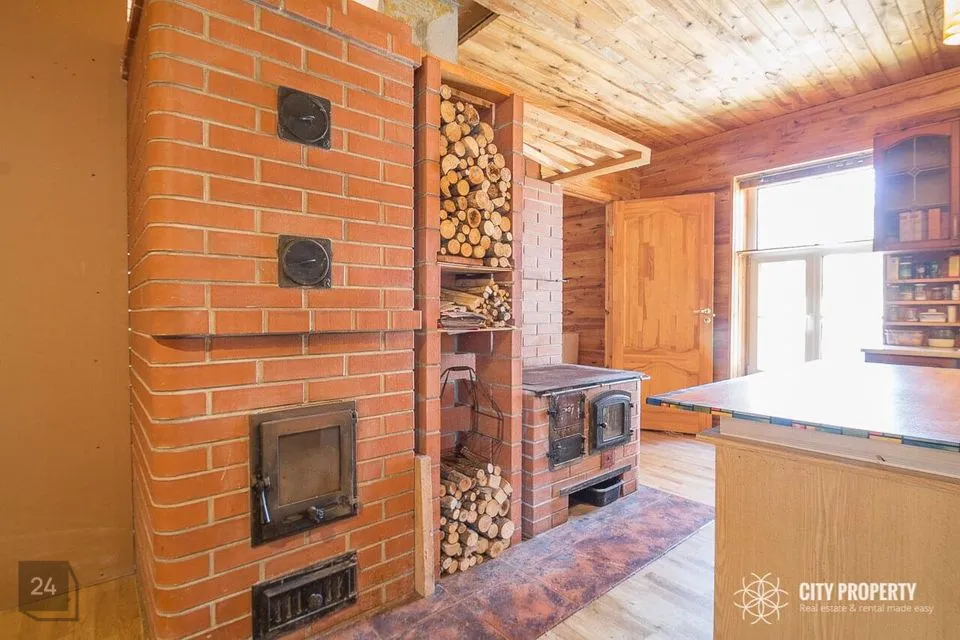 The house is heated by a stove and a wood stove with a stove. The property has two boreholes and local sewage. All buildings have water.