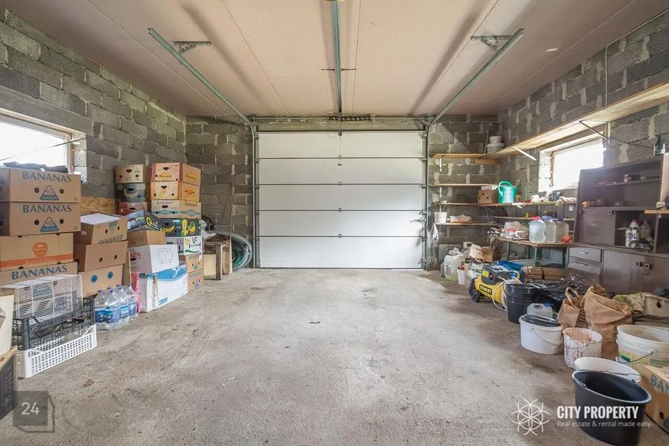 On the first floor there is a kitchen, living room, two bedrooms, storage room, toilet, spacious veranda with winter garden and garage.