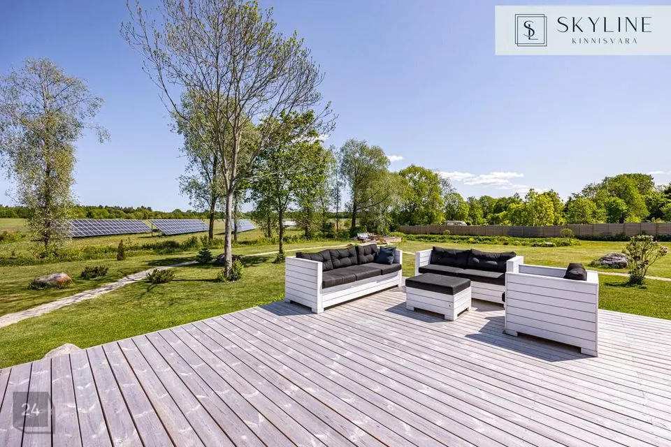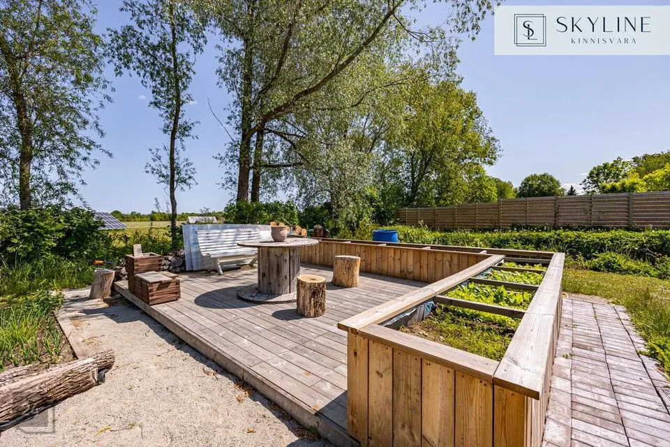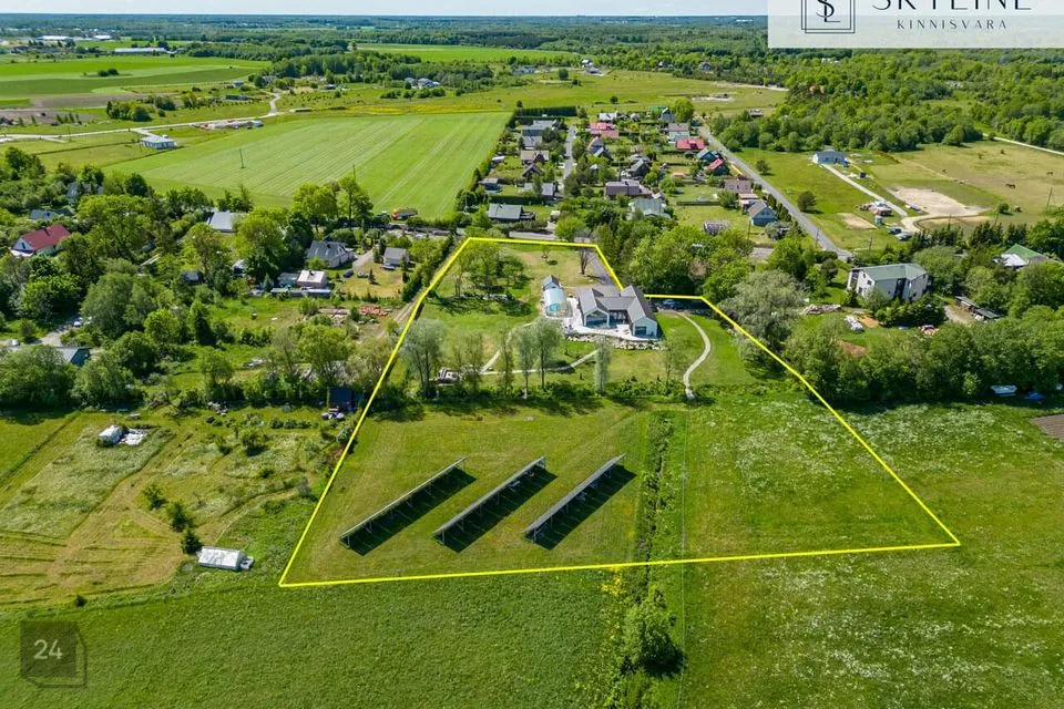 12733m2-suurune kinnistu hõlmab endas 3126 m2 haritavat maad, 5540 m2 looduslikku rohumaad, 342 m2 metsamaad, 2308 m2 õuemaad ning 1417 m2 muud maad. Kinnistu ja hoov on loodud nii, et siin saaks nautida täielikku privaatsust, kuid samas ei oleks aias liiga palju toimetada. Muruala aitab korras hoida robotniiduk. Kinnistult leiab nii peenraid, marjapõõsaid kui ka kõrghaljastust. Lisaks elumajale, sauna- ja basseinimajale on siin ka vana ja osaliselt taastatud maakelder, kuhu on võimalik luua miks mitte isiklik õlle- ja veinikelder. Hoovis ja erinevates terrassi otsades on päike terve päeva vältel.