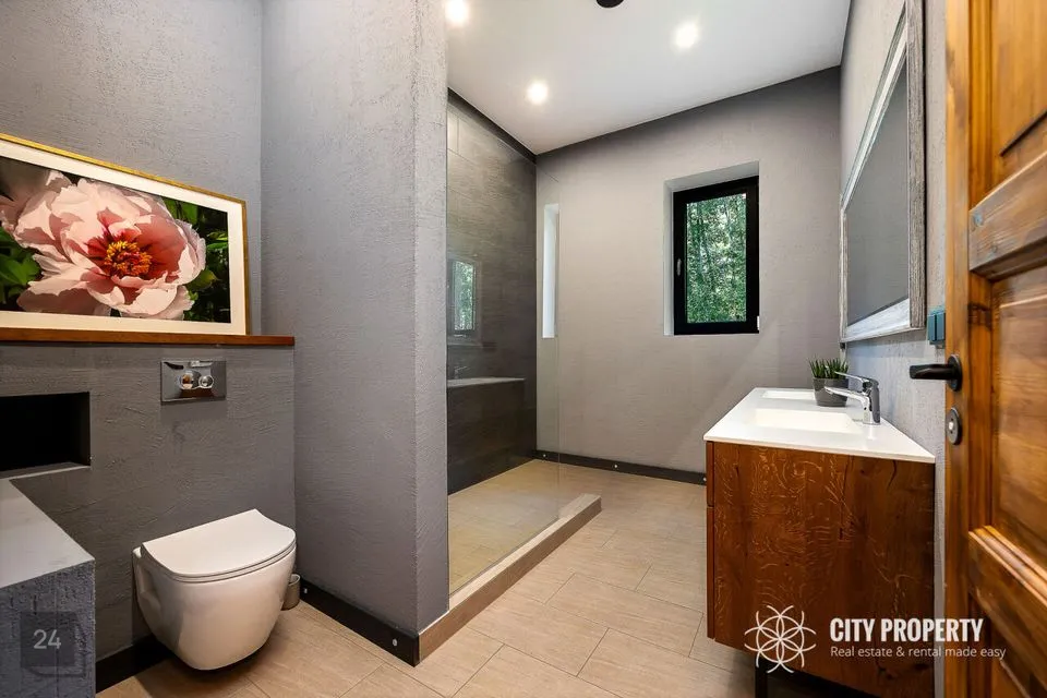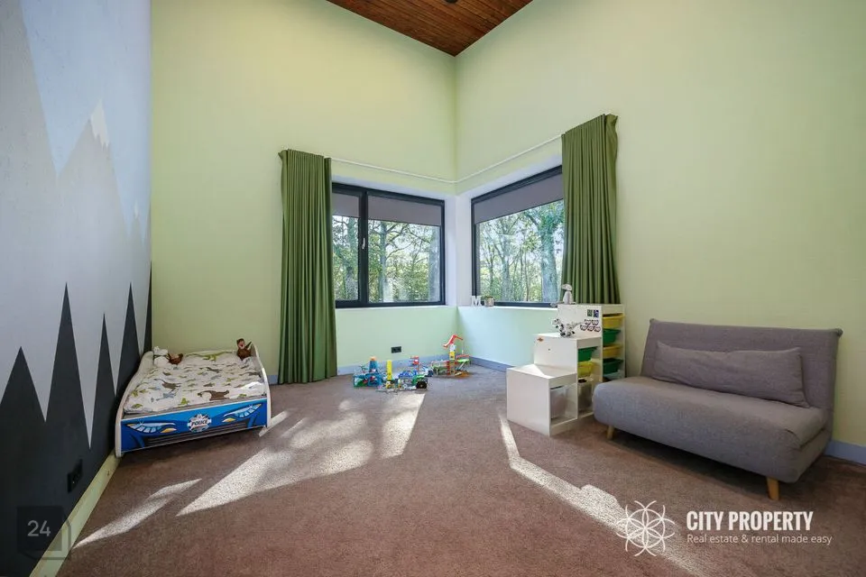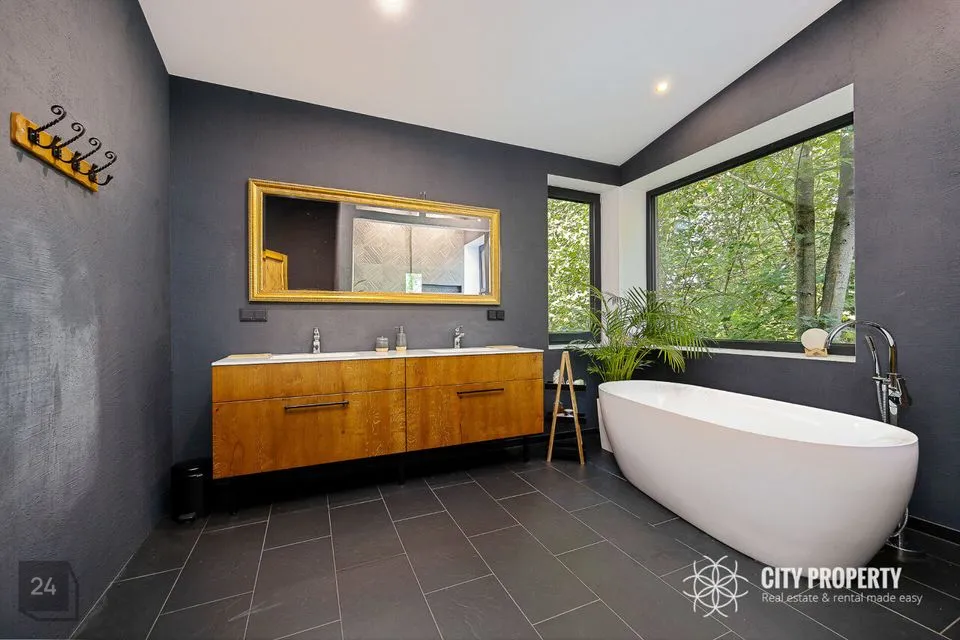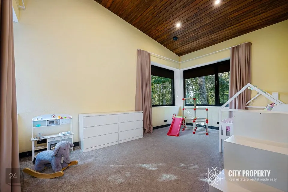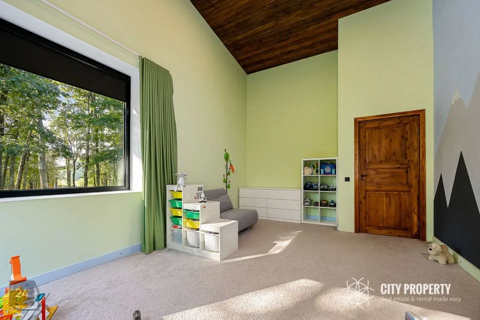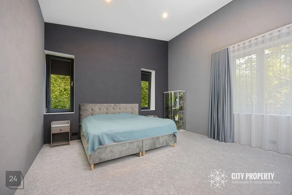 • Masterbedroom koos vannitoa ja walk-in garderoobiga (61,5 m²): Luksuslik ja ruumikas magamistuba, kust ei puudu valgus ega avarus. Tuba on kujundatud täieliku privaatsuse ja mugavuse tagamiseks. Vannituba on varustatud suure akende all asuva vanniga, mis pakub lõõgastavaid vaateid, ning eraldi dušinurgaga. Walk-in garderoob on unistuste hoiuruum, kus on piisavalt ruumi kogu garderoobi organiseerimiseks ja kauni väljapaneku loomiseks.