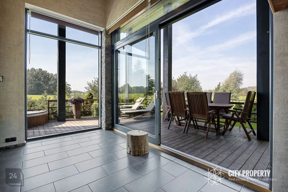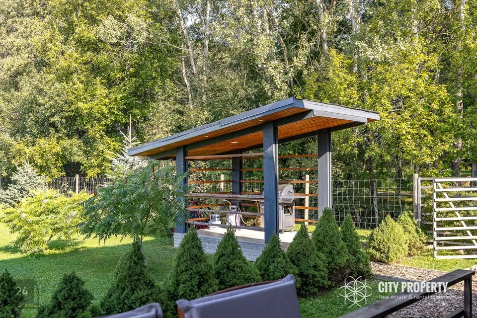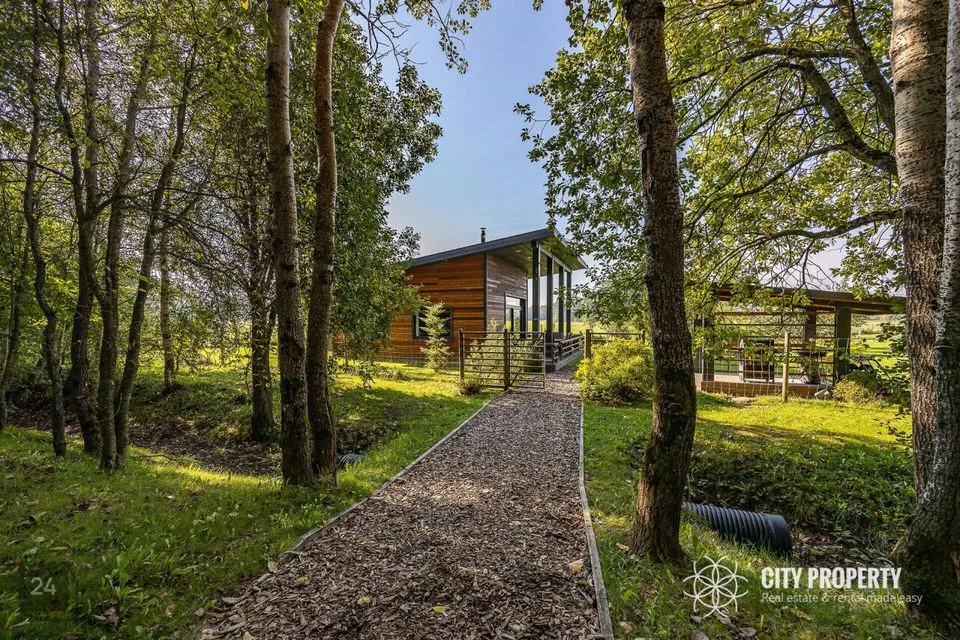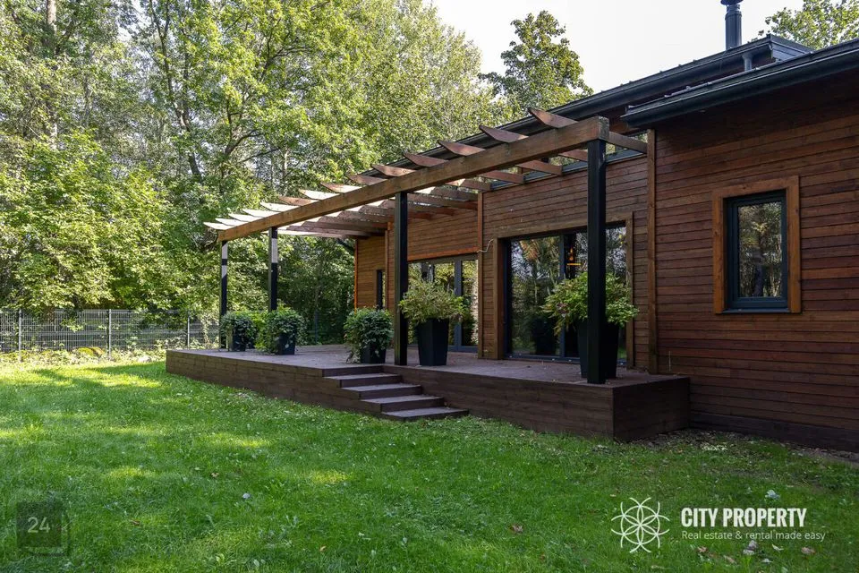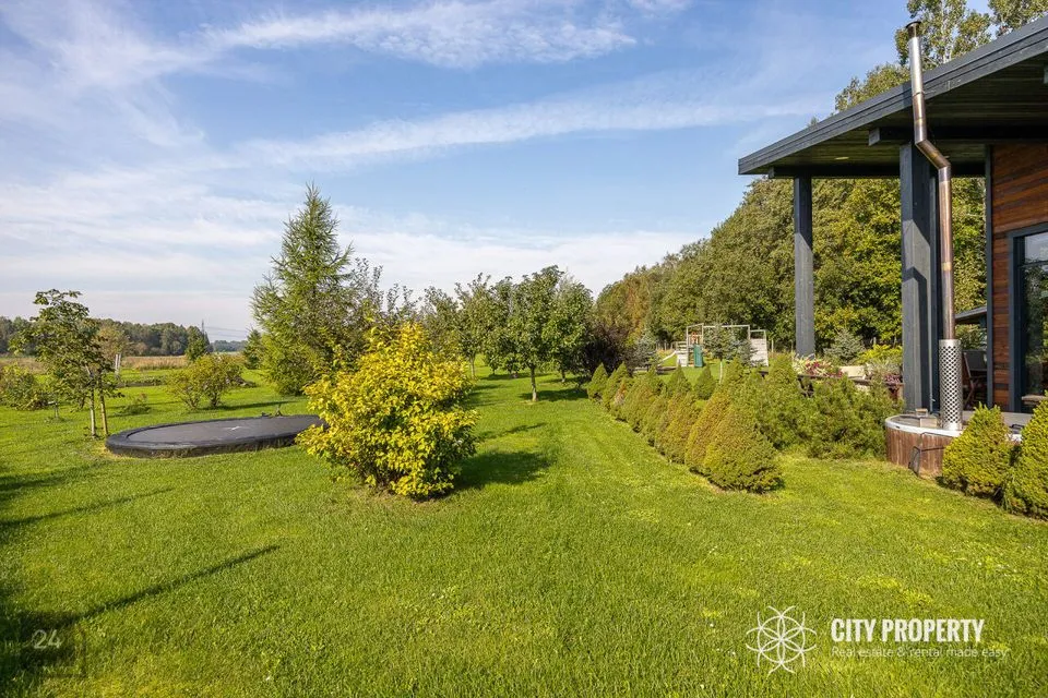 Lummav allee juhatab teed koduni, kus ühel pool ootavad sind vaba aja nautimiseks saunakompleks, kümblustünn, väliköök, viljapuuaed ja laste mänguala. Teisel pool hoiab privaatset elamut varjul rahu ja vaikust kinkiv metsatukk. Arhitektuur sulandub harmooniliselt loodusega, tuues esile nii maastiku võlu kui ka kodu unikaalse iseloomu, luues tõelise pelgupaiga, kus aeg peatub.